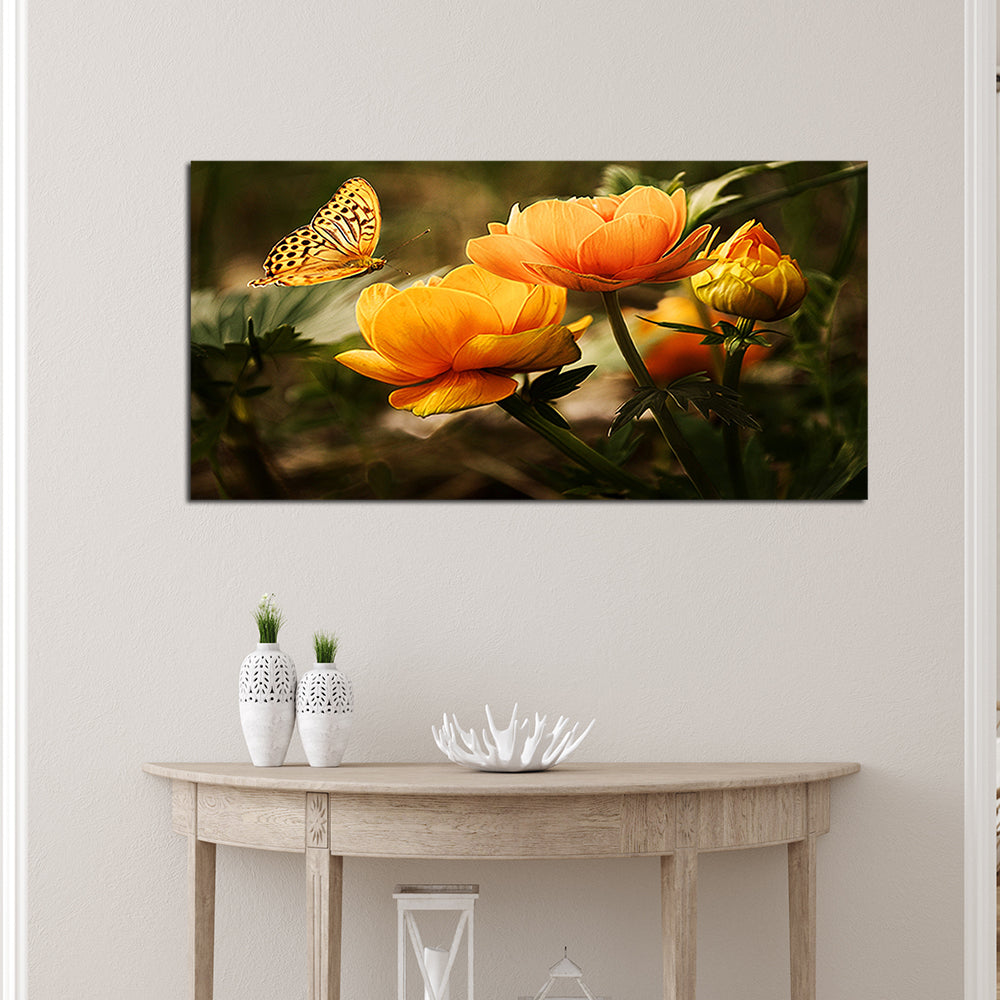 Butterfly Sitting On Flower Canvas Wall Painting