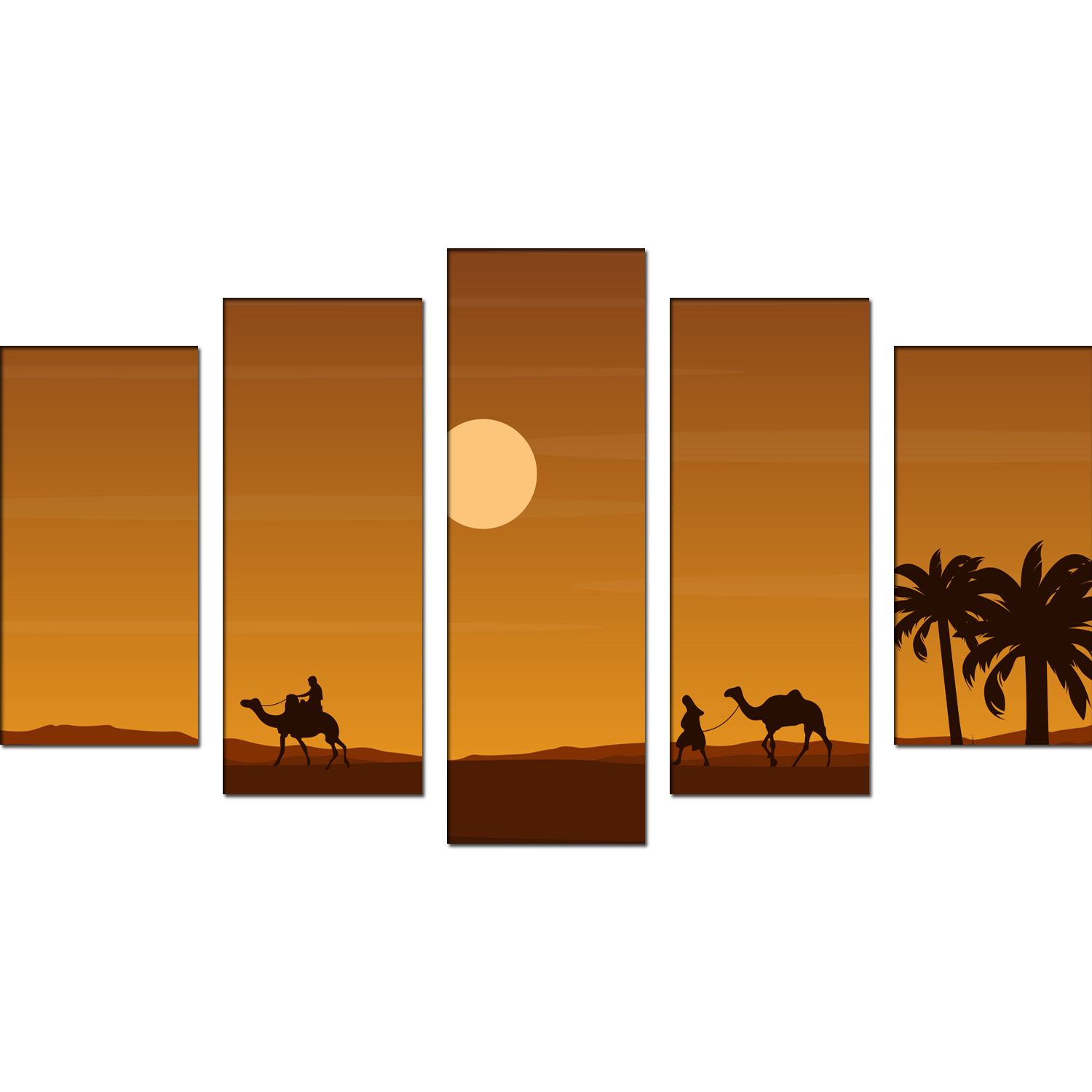 Camel Rider In Desert Canvas Wall Painting- With 5 Frames