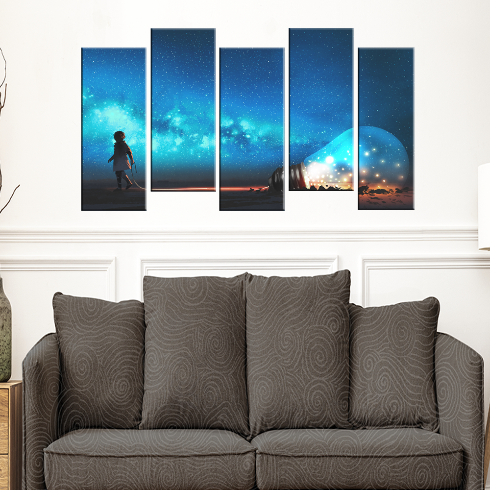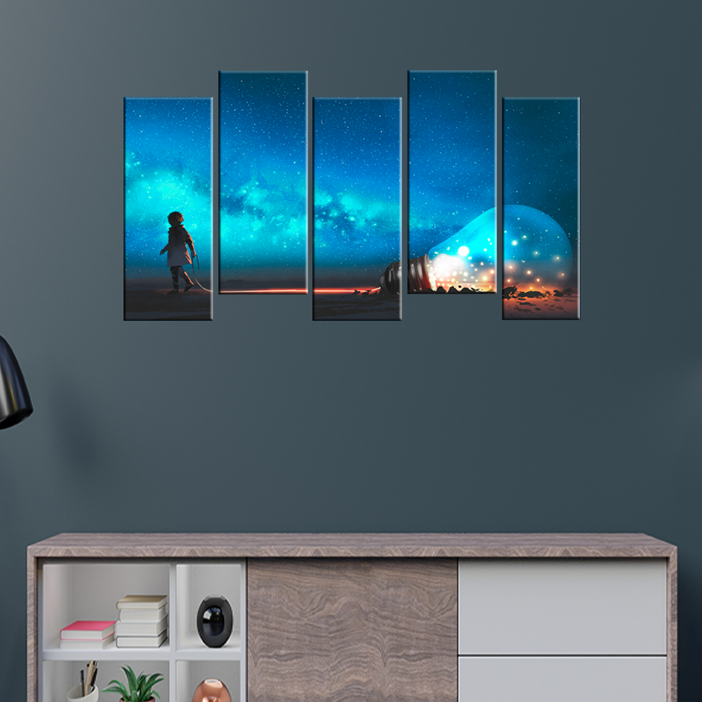Boy Pulled The Big Bulb Canvas Panel Wall Painting - 5 Frames