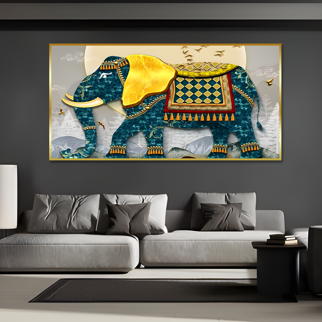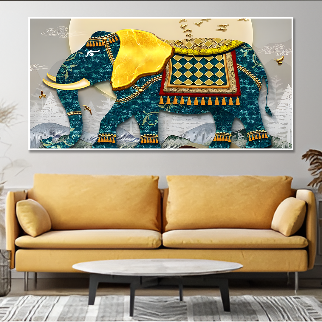Classic and Royal Elephant with Golden Tusks Canvas Floating Frame Wall Painting is a symbol of peace & prosperity. Fall in love with this beautiful and designer wall painting as a part of your home decor. Available in three canvas colors, it is a perfect living room painting that can completely change the look of your home. It is mounted on a strong and robust wooden frame which is made of American Pine thereby making it resistant to bending at corners due to the constant pressure of hanging on the wall. These canvas wall art are printed in HD quality and also use Eco-friendly inks that leave no residue or fumes in the environment around where it is put.