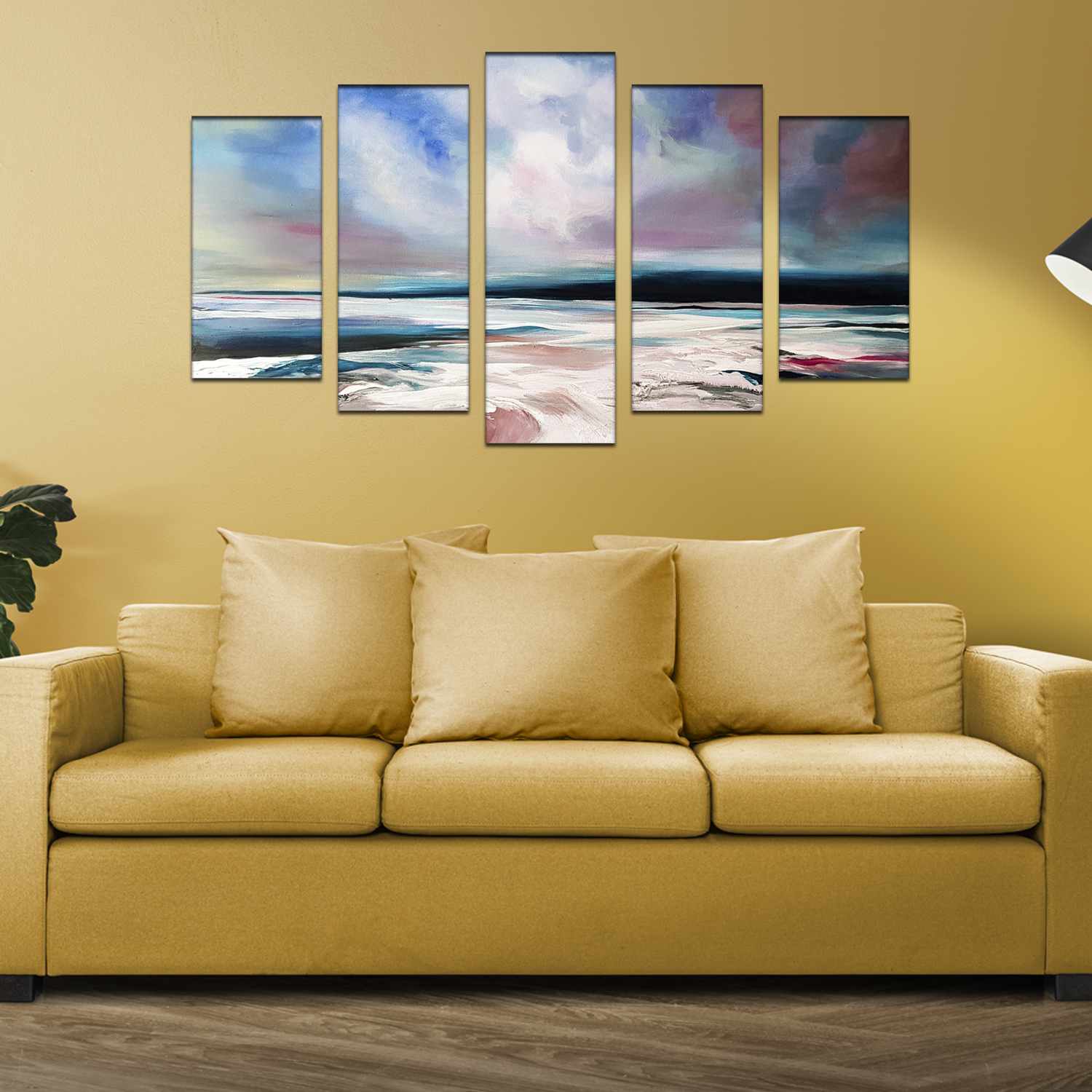 Cloud Abstract Art Canvas Wall Painting- With 5 Frames
