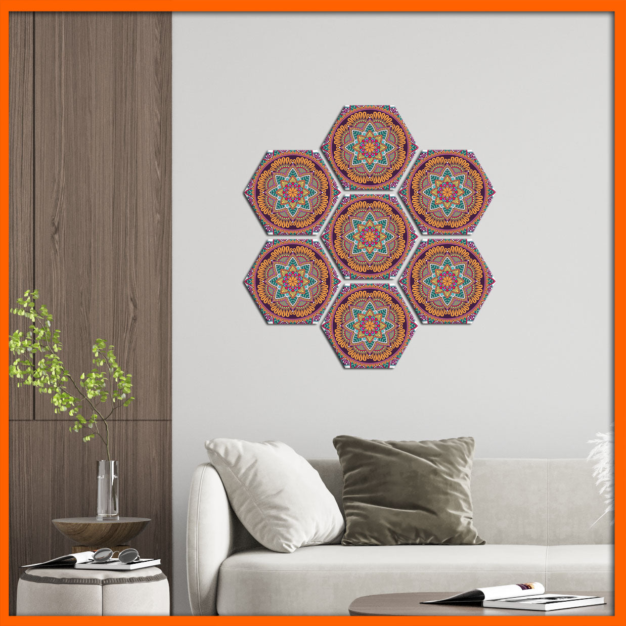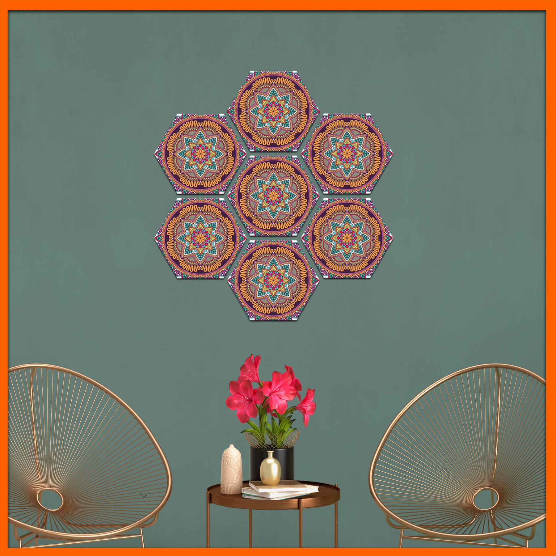 Colorful Mandala Flower Hexagonal Canvas Wall Painting - 7pcs