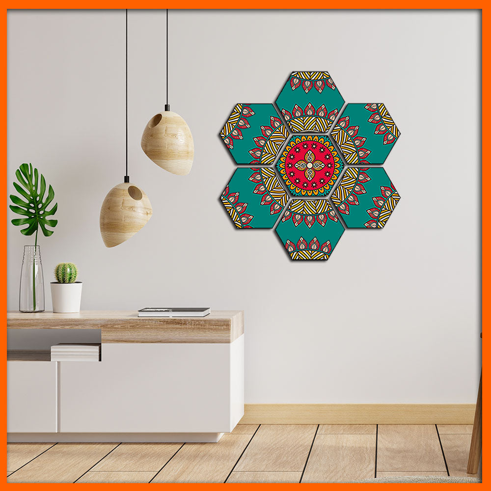 Colorful Pattern Mandala Hexagonal Canvas Wall Painting - 7pcs