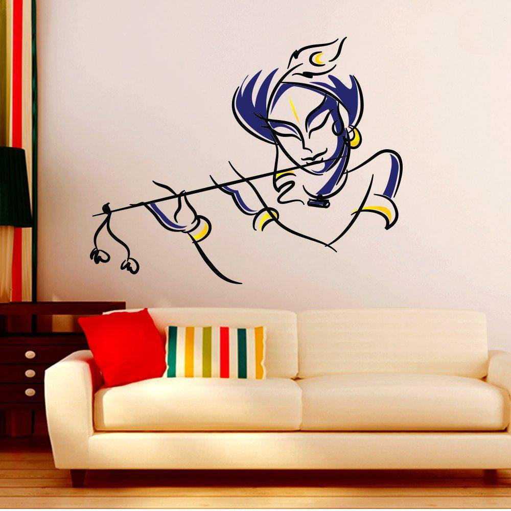 Colourful Krishna Wall Sticker for Living Room/Self Adhesive Vinyl Wall Decal(76 x 60 cm)