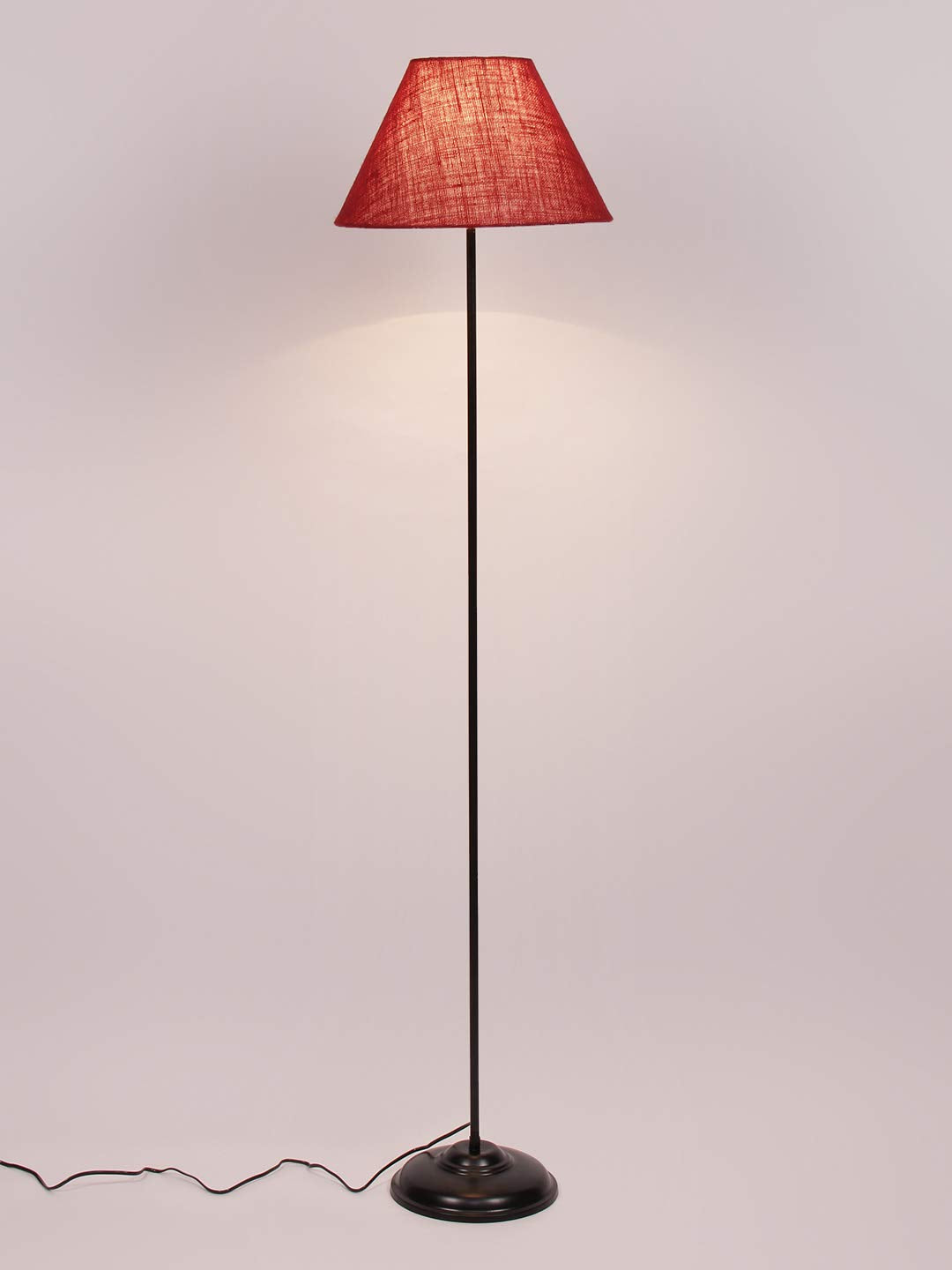 Conical Mahroon Jute Shade Floor Lamp with Black Base