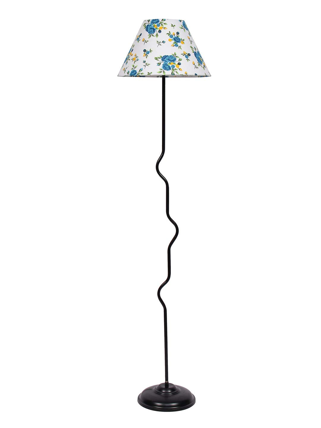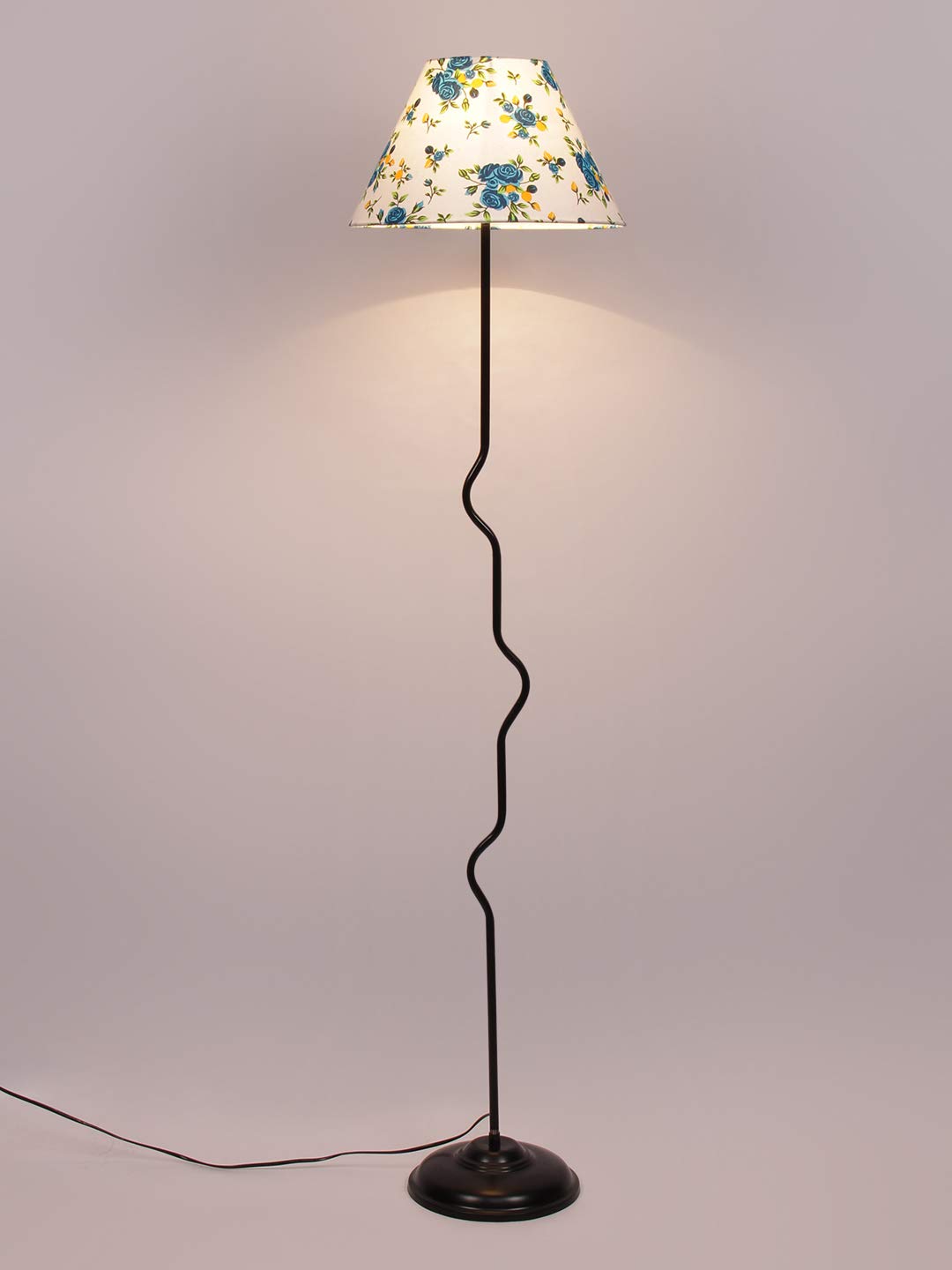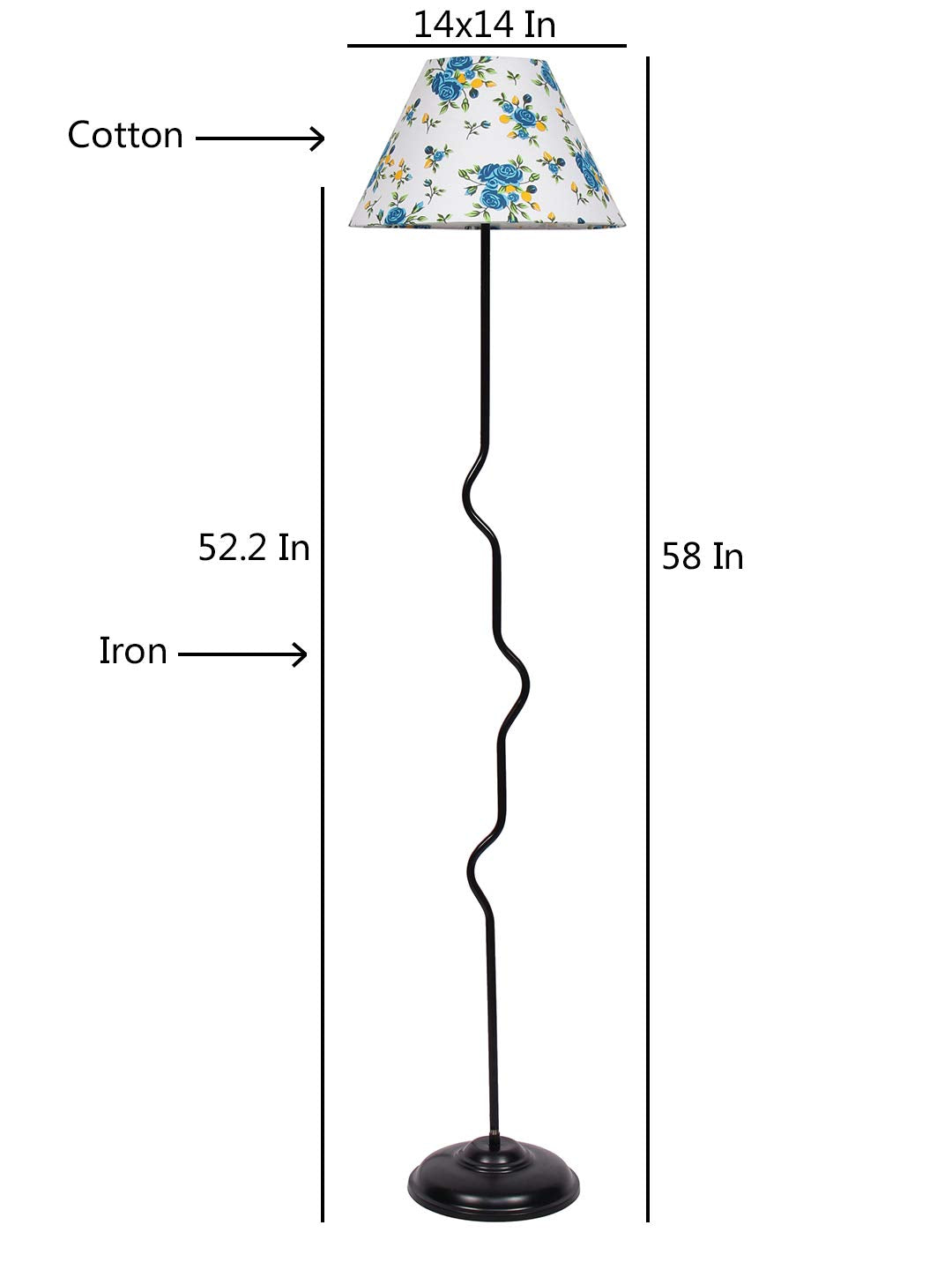 Conical Multicolor Cotton Shade Floor Lamp with Black Base