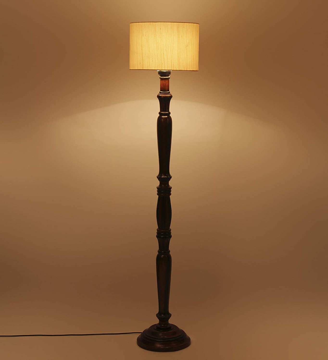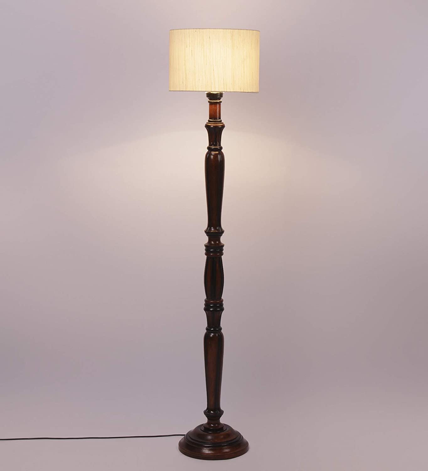 Cotton Drum Designer Fashionable Wooden Floor Lamp for Home Decor (Off White, Medium)