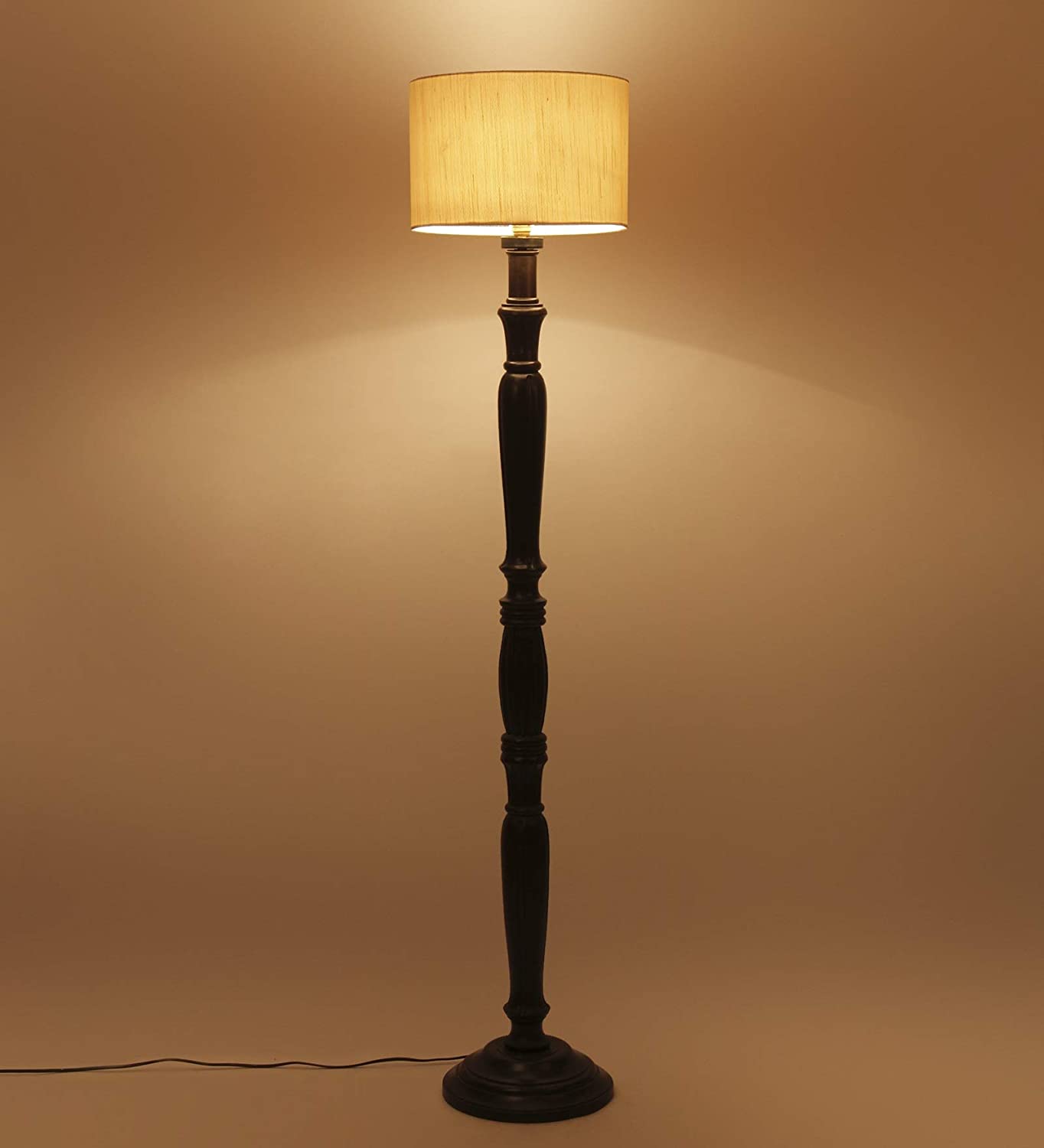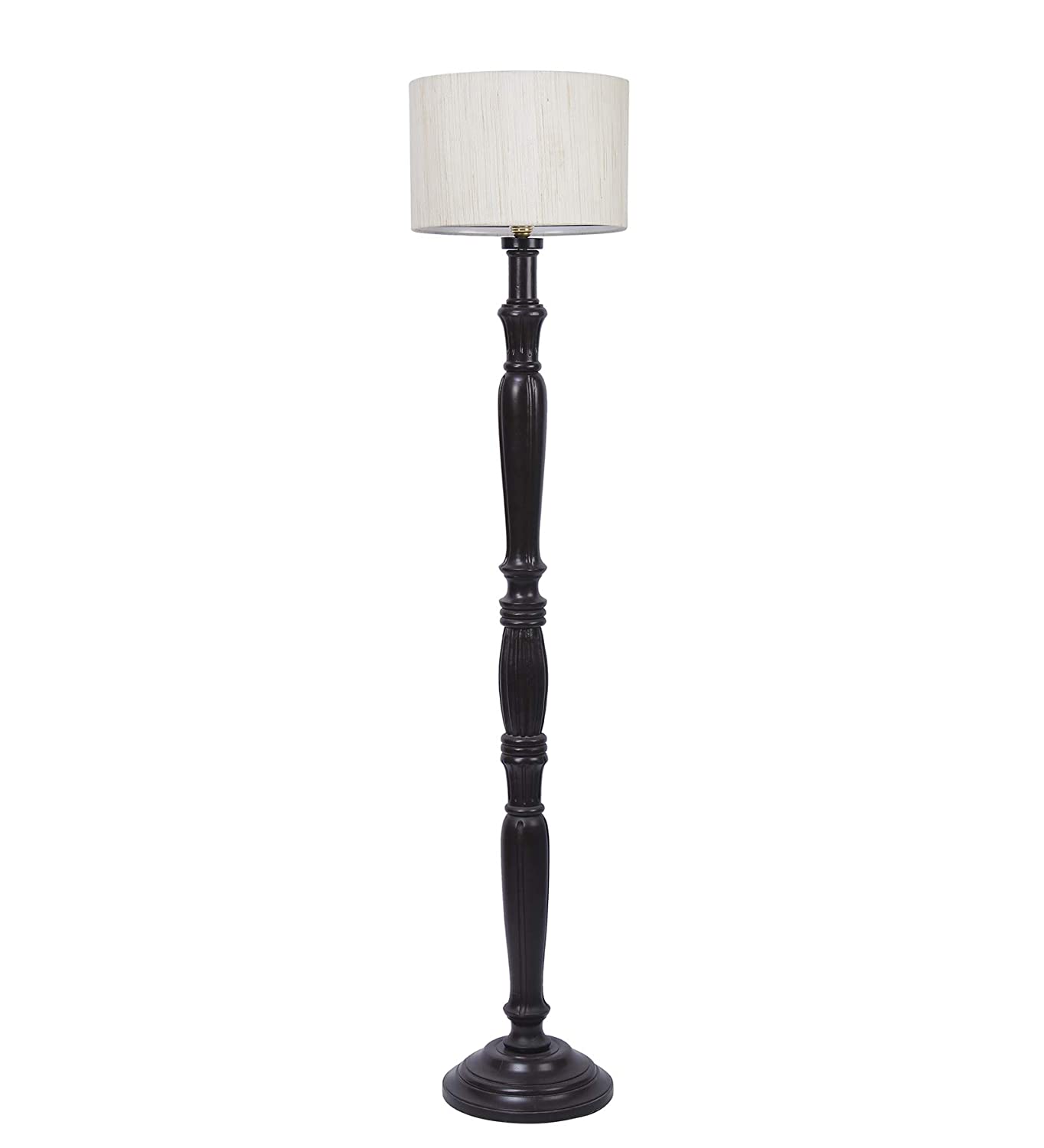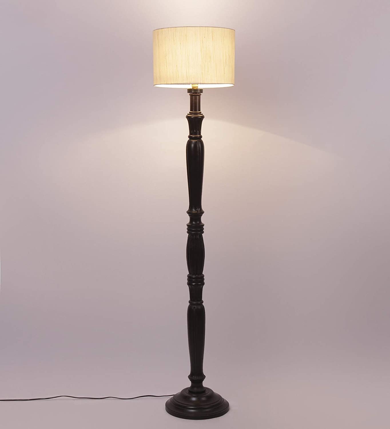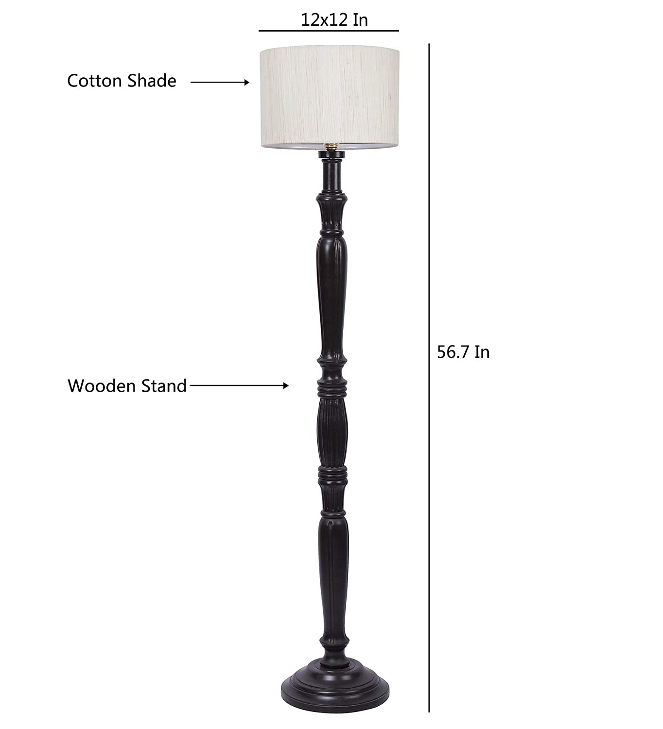 Cotton Drum Designer Fashionable Wooden Floor Lamp for Home Decor (Off White, Medium)