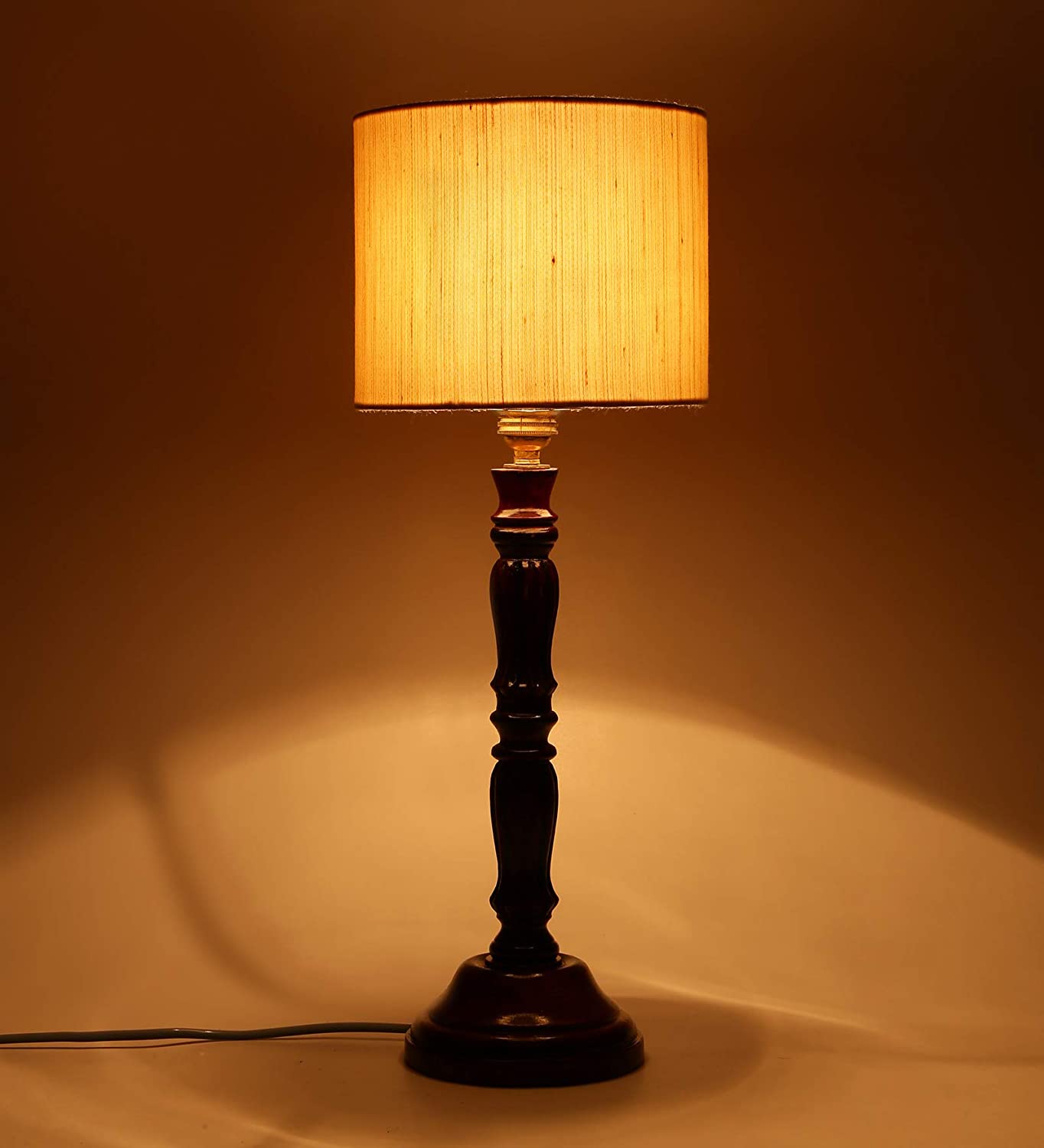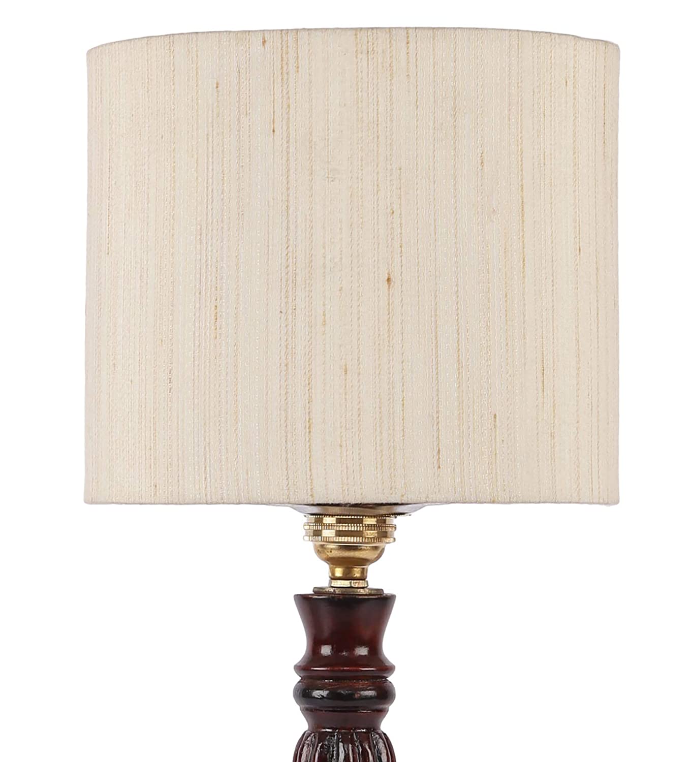 Cotton Drum Designer Wooden Table Lamp for Home Decor (Off White, Small) AD535