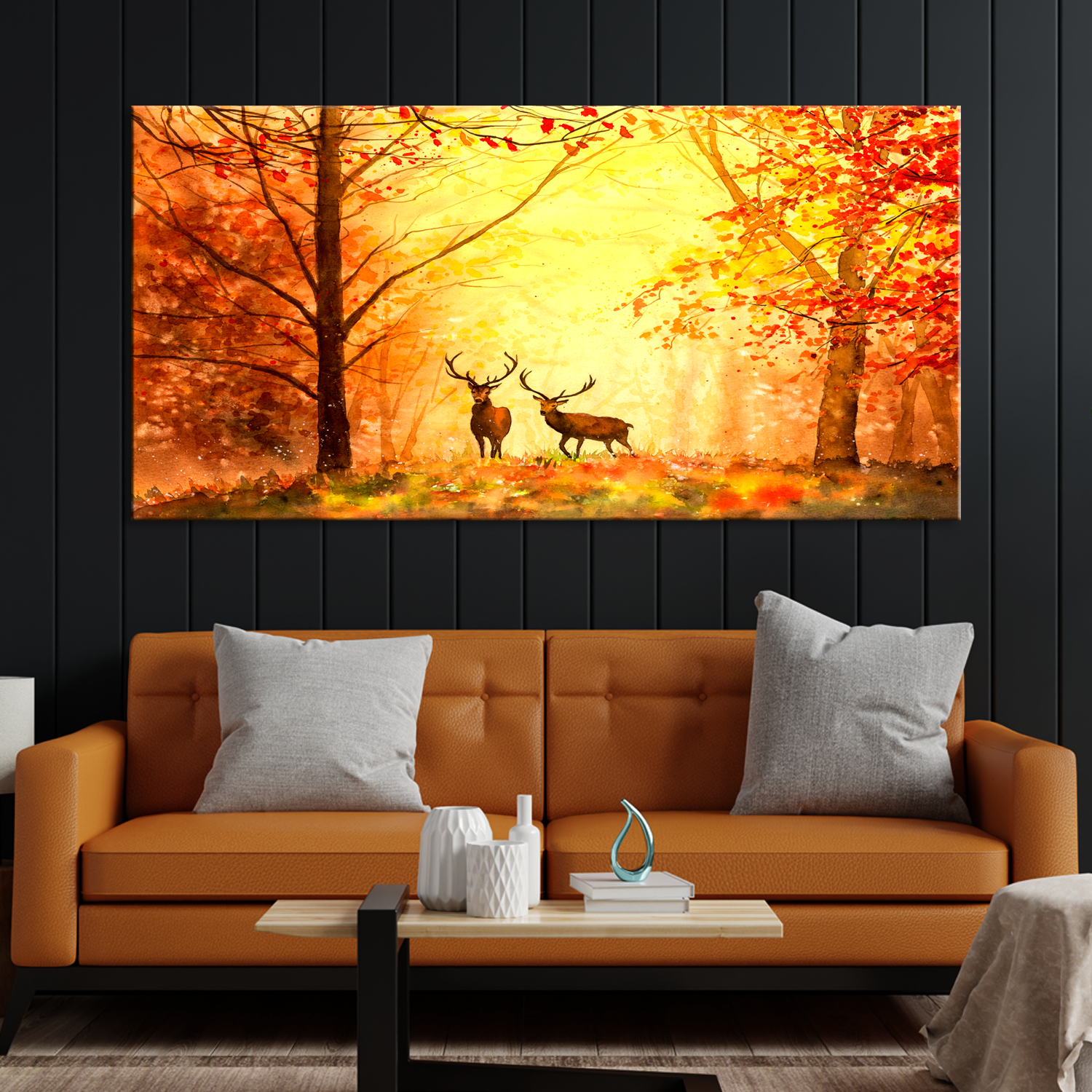 The Couple Deer In Forest Abstract Art Canvas Wall Painting is the right canvas wall painting if you want to disclose your love for animals moving in a jungle. You can hang this Abstract Art Painting in your living room, dining hall, or bedroom. The use of high-definition photo print technology on the Matt finish canvas makes this wall canvas painting look like the real work of an experienced artist/painter. In the printing process, our technicians use the highly sophisticated HP Latex printing machine, which can do 6-colour painting. After installation, this eye-catching canvas painting will help you improve the interior look of your home or office. Apart from decorating your home or commercial setup, you can present this wall canvas painting as a gift to your loved ones on any specific occasion such as birthdays and holidays.