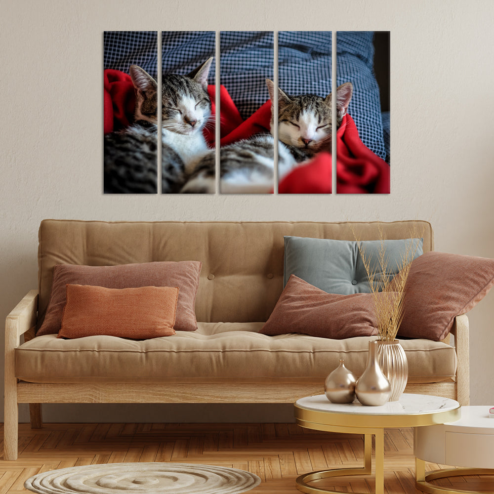 Cute Kittens Sleeping Together Canvas Wall Painting - With 5 Panel