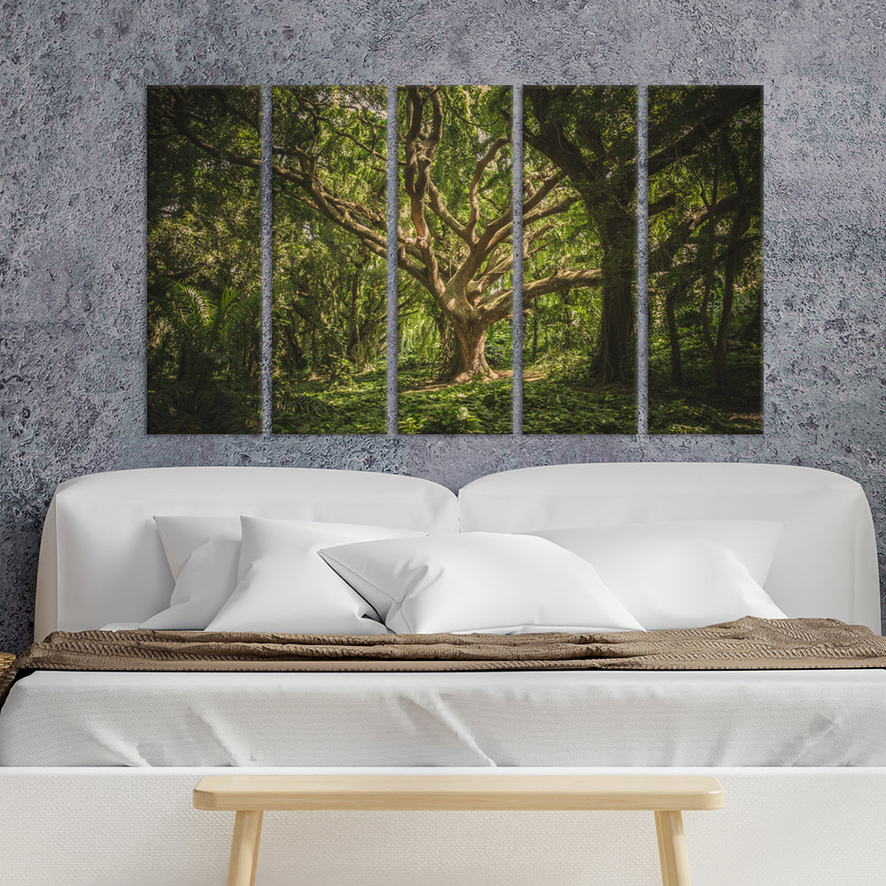 Dark Forest Canvas Wall Painting - With 5 Panel