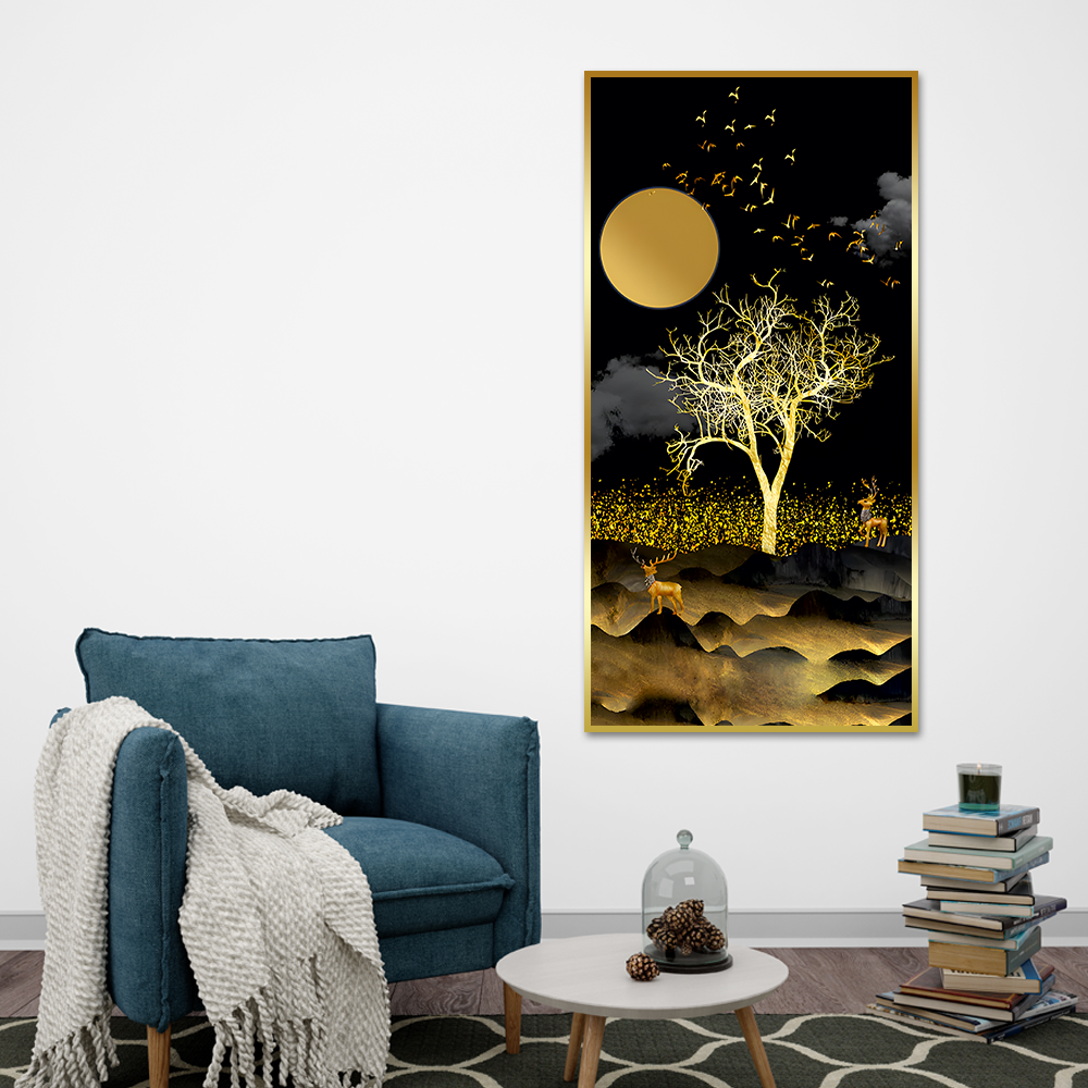 Dark Moon Light with Golden Birds Premium Canvas Floating Frame Wall Painting is a symbol of peace & prosperity. Fall in love with this beautiful and designer wall painting as a part of your home decor. Available in three canvas colors, it is a perfect living room painting that can completely change the look of your home. It is mounted on a strong and robust wooden frame which is made of American Pine thereby making it resistant to bending at corners due to the constant pressure of hanging on the wall. These canvas wall art are printed in HD quality and also use Eco-friendly inks that leave no residue or fumes in the environment around where it is put.