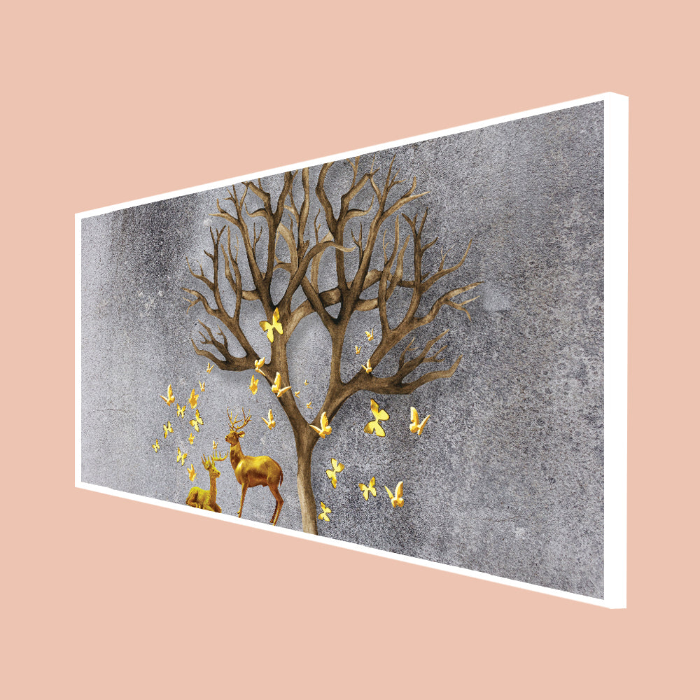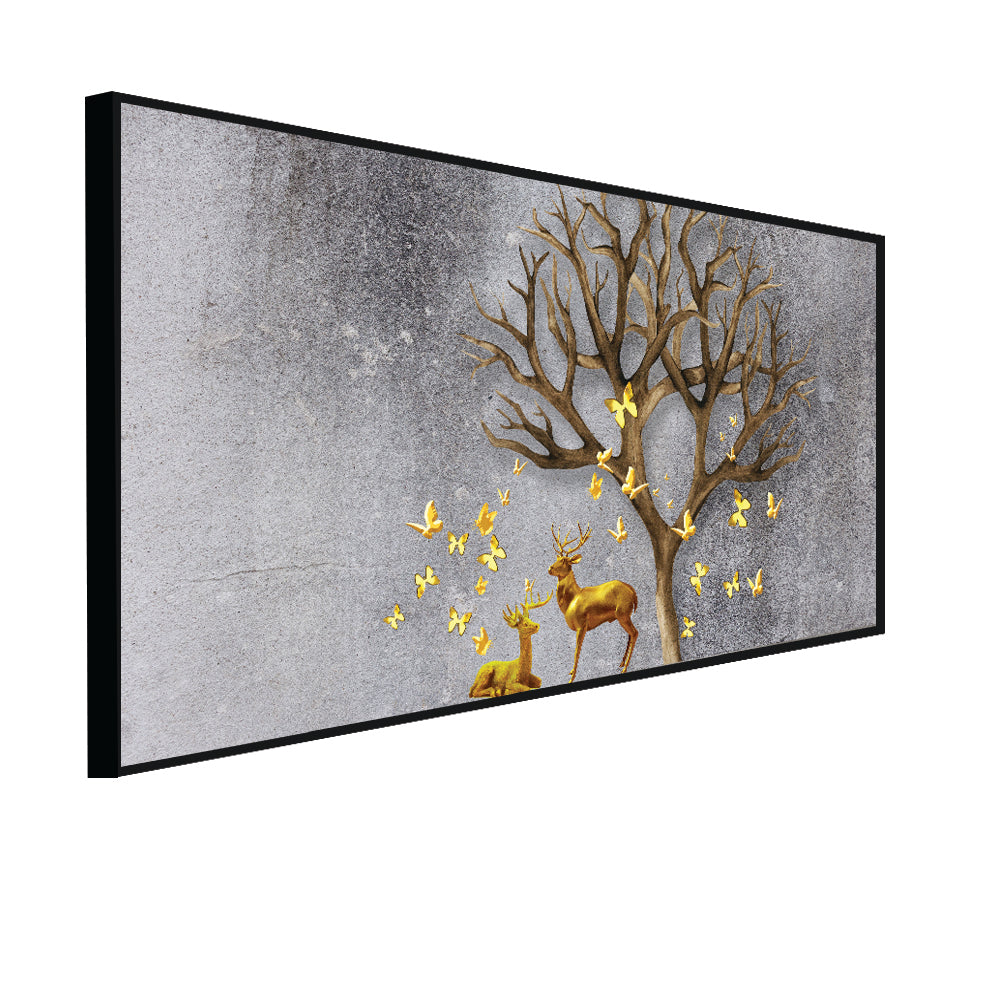 Deer With Beautiful Butterfly Canvas Floating Frame Wall Painting