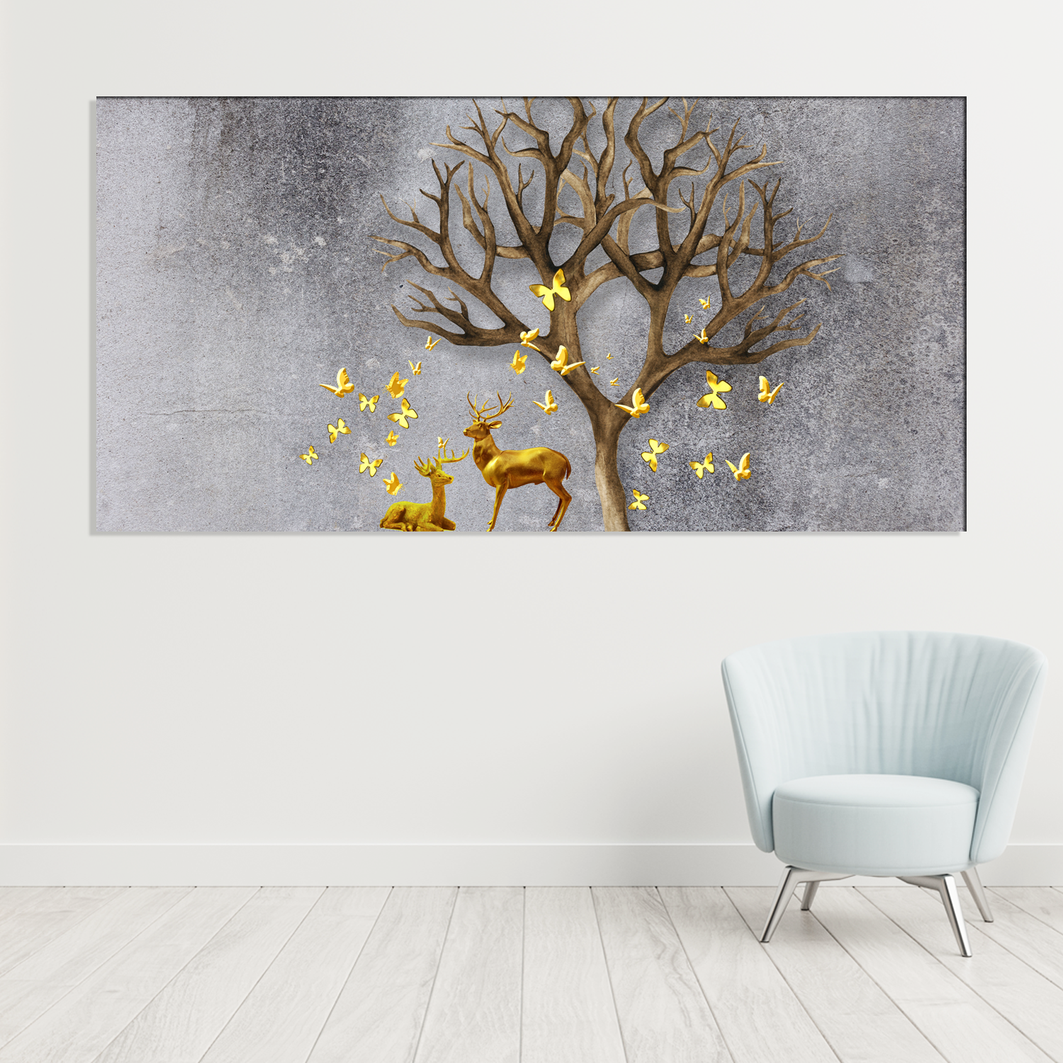 Deer With Beautiful Butterfly Canvas Wall Painting