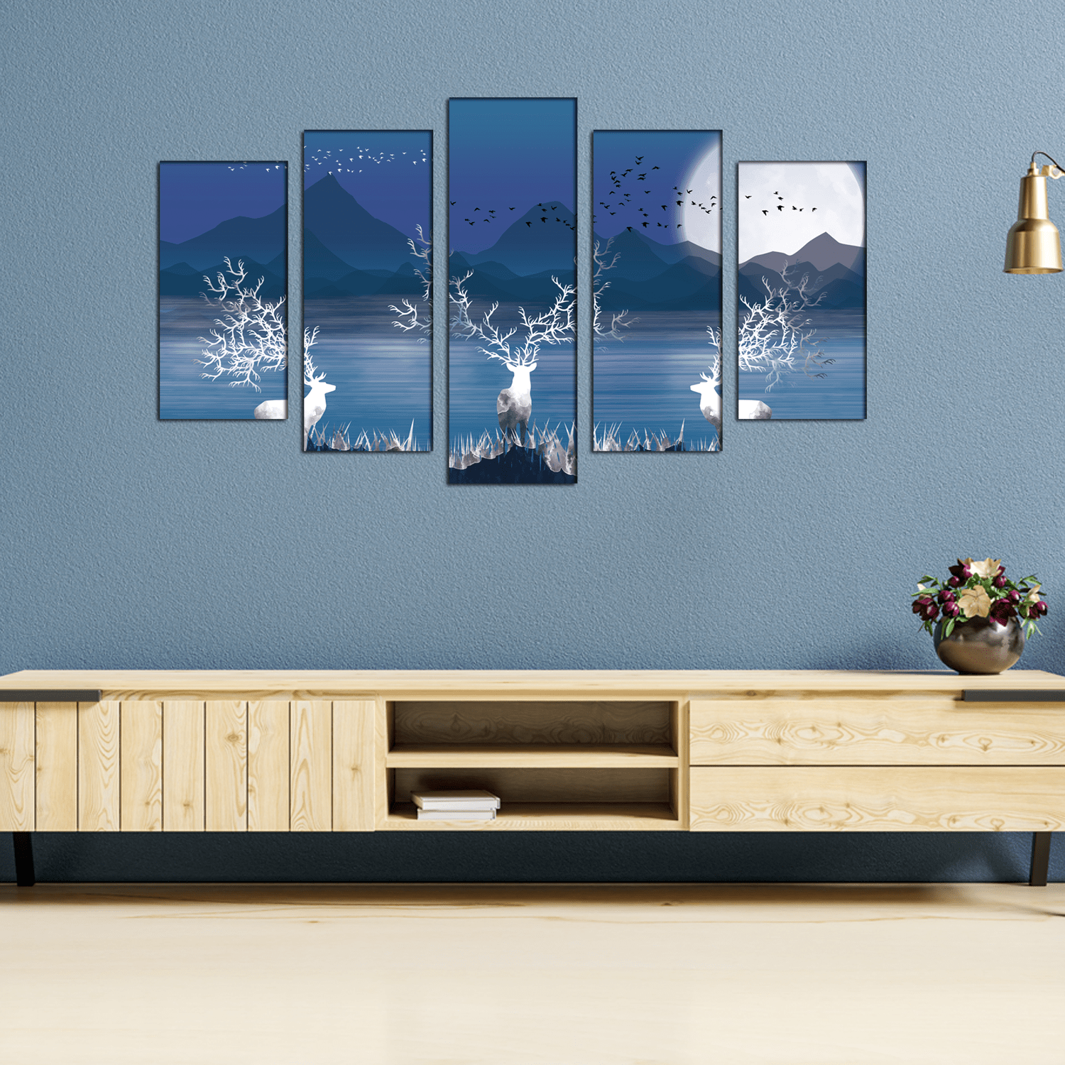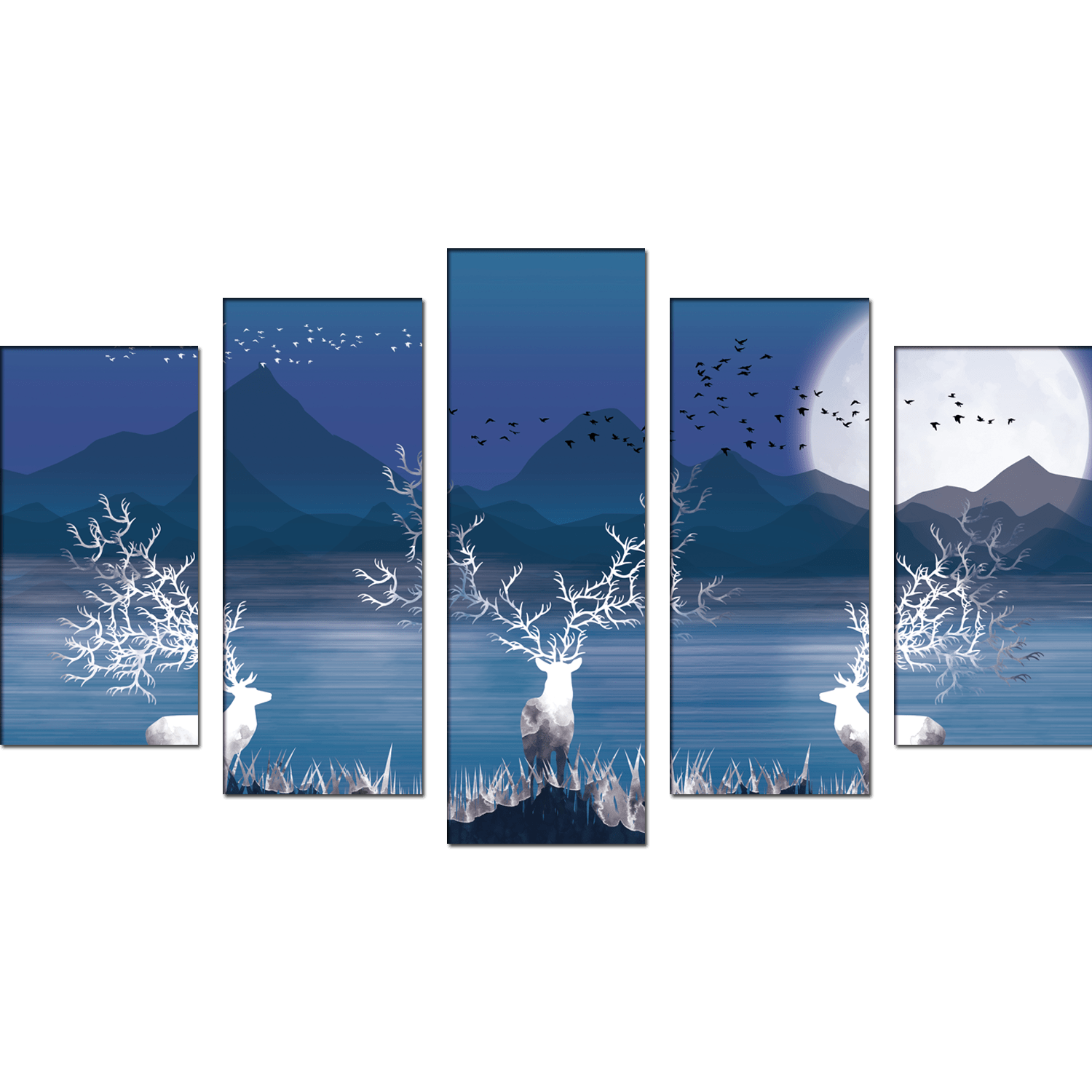 DECORGLANCE White Deer In Night Canvas Wall Painting- With 5 Frames