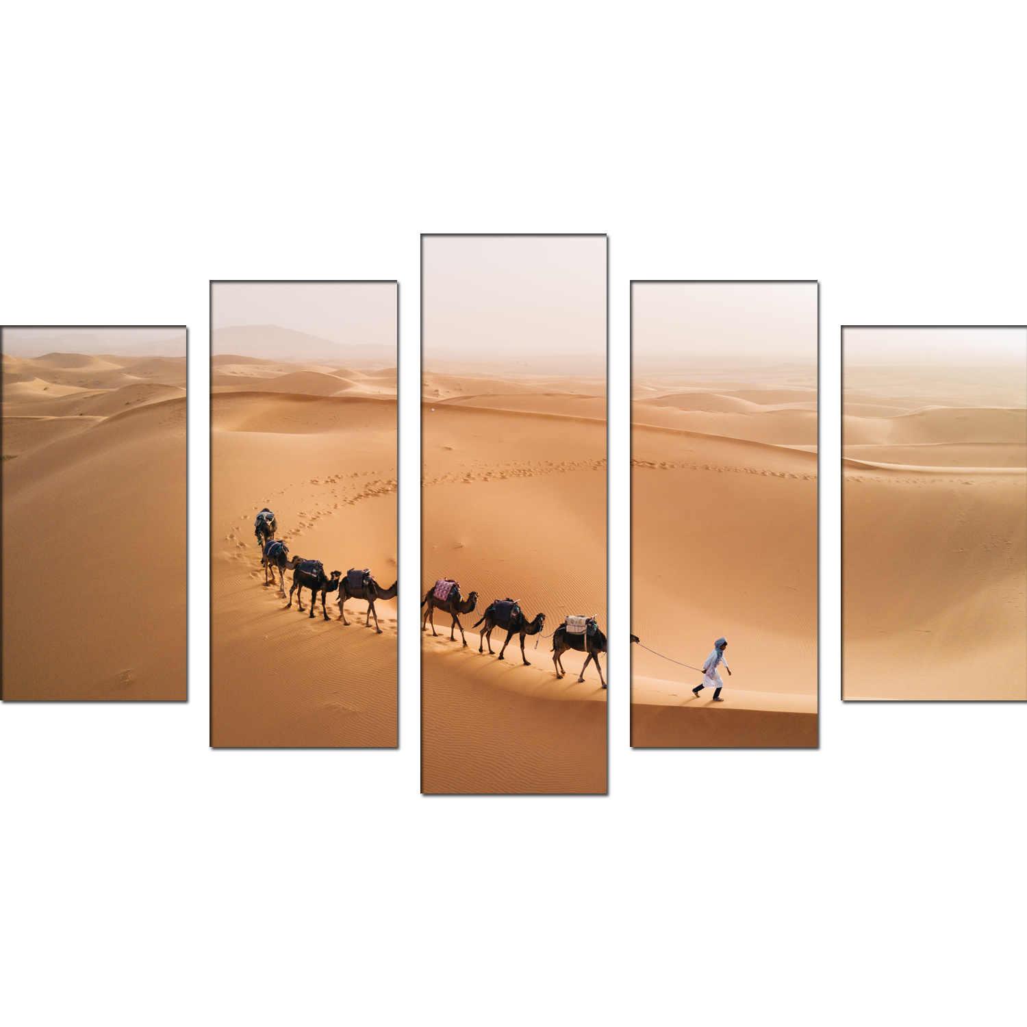Camel Desert Canvas Panel Wall Painting - With 5 Frames