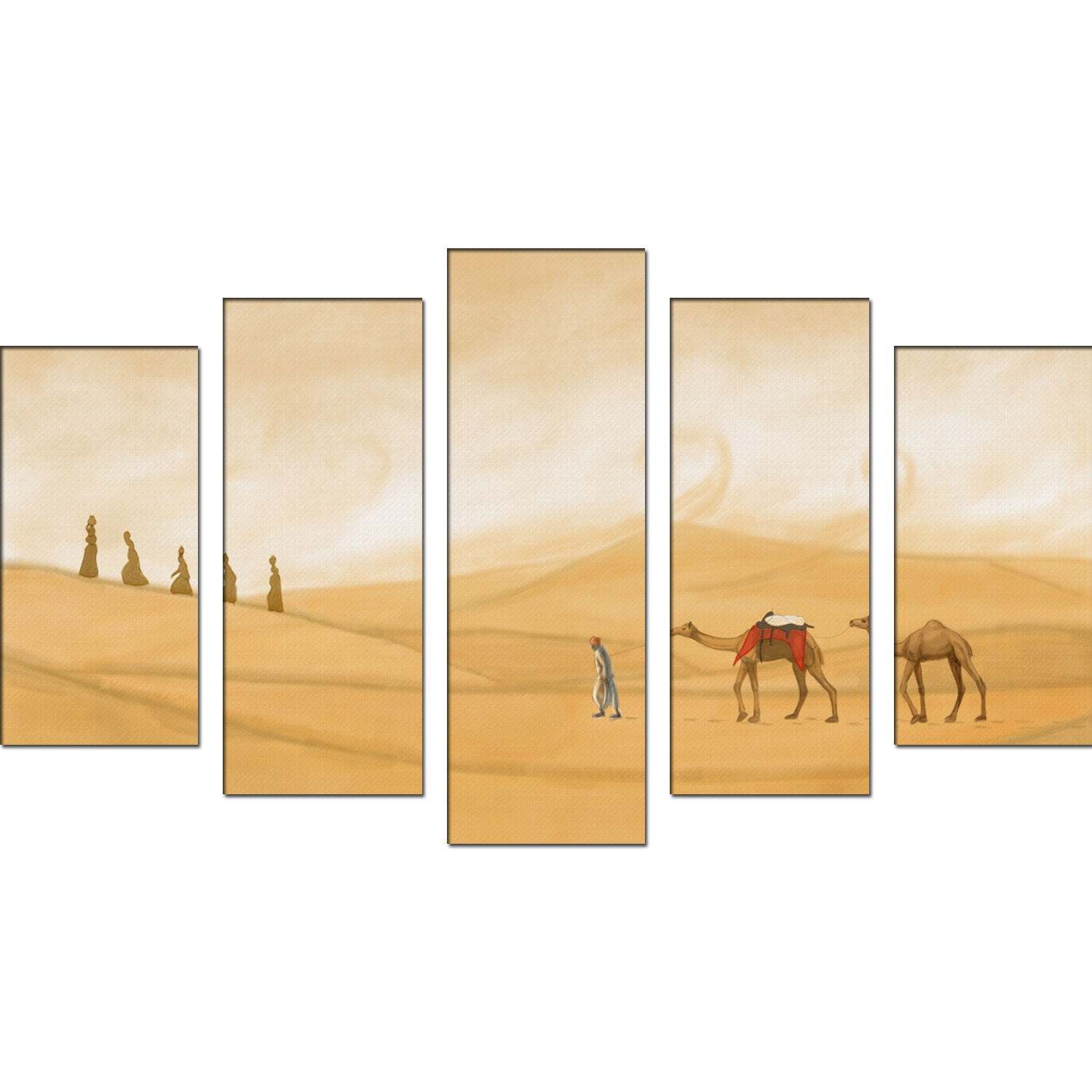 Camel In Desert Canvas Wall Painting- With 5 Frames