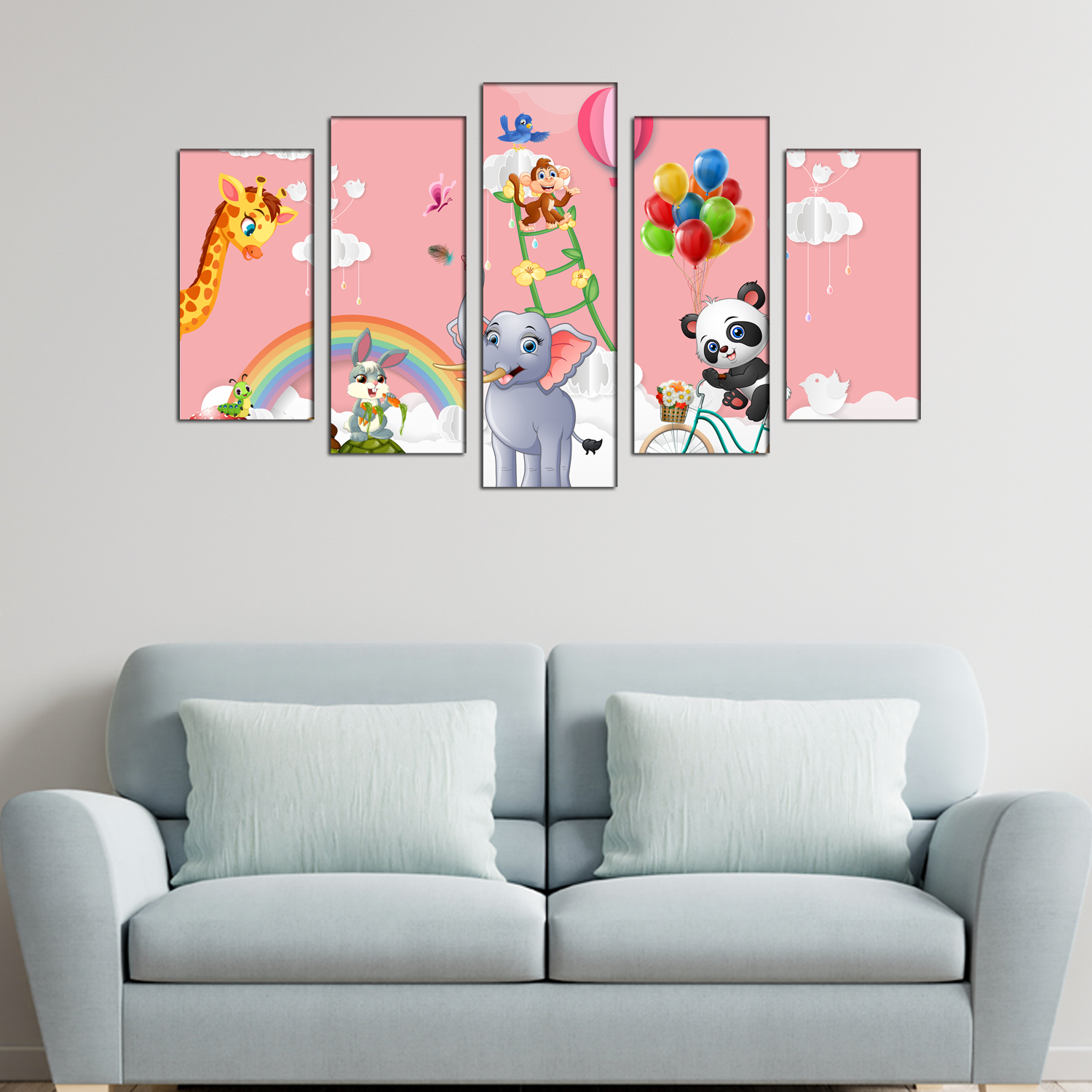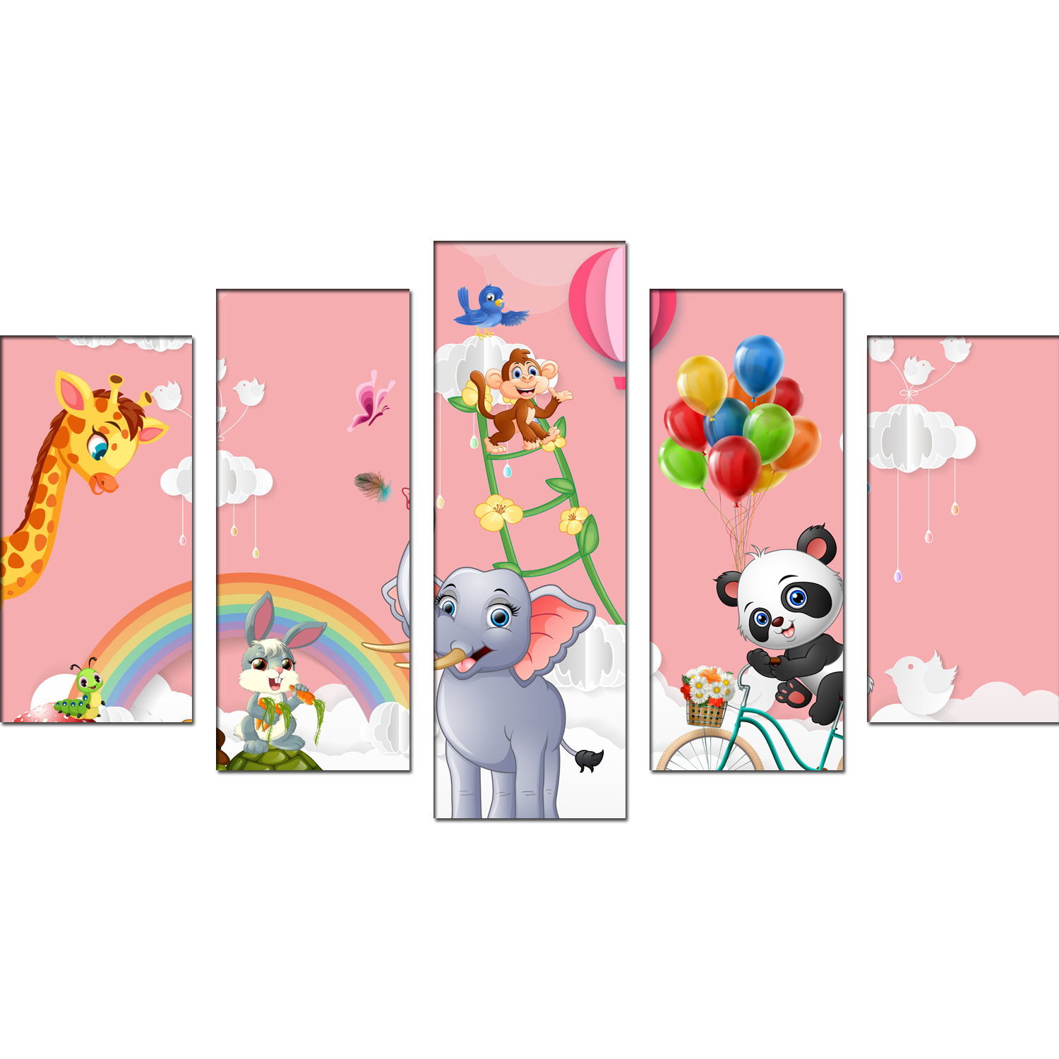 Animal's Cartoon Canvas Wall Painting- With 5 Frames