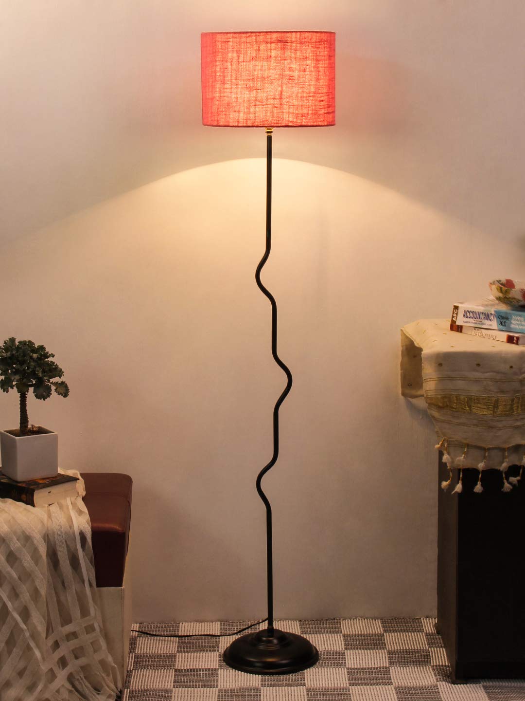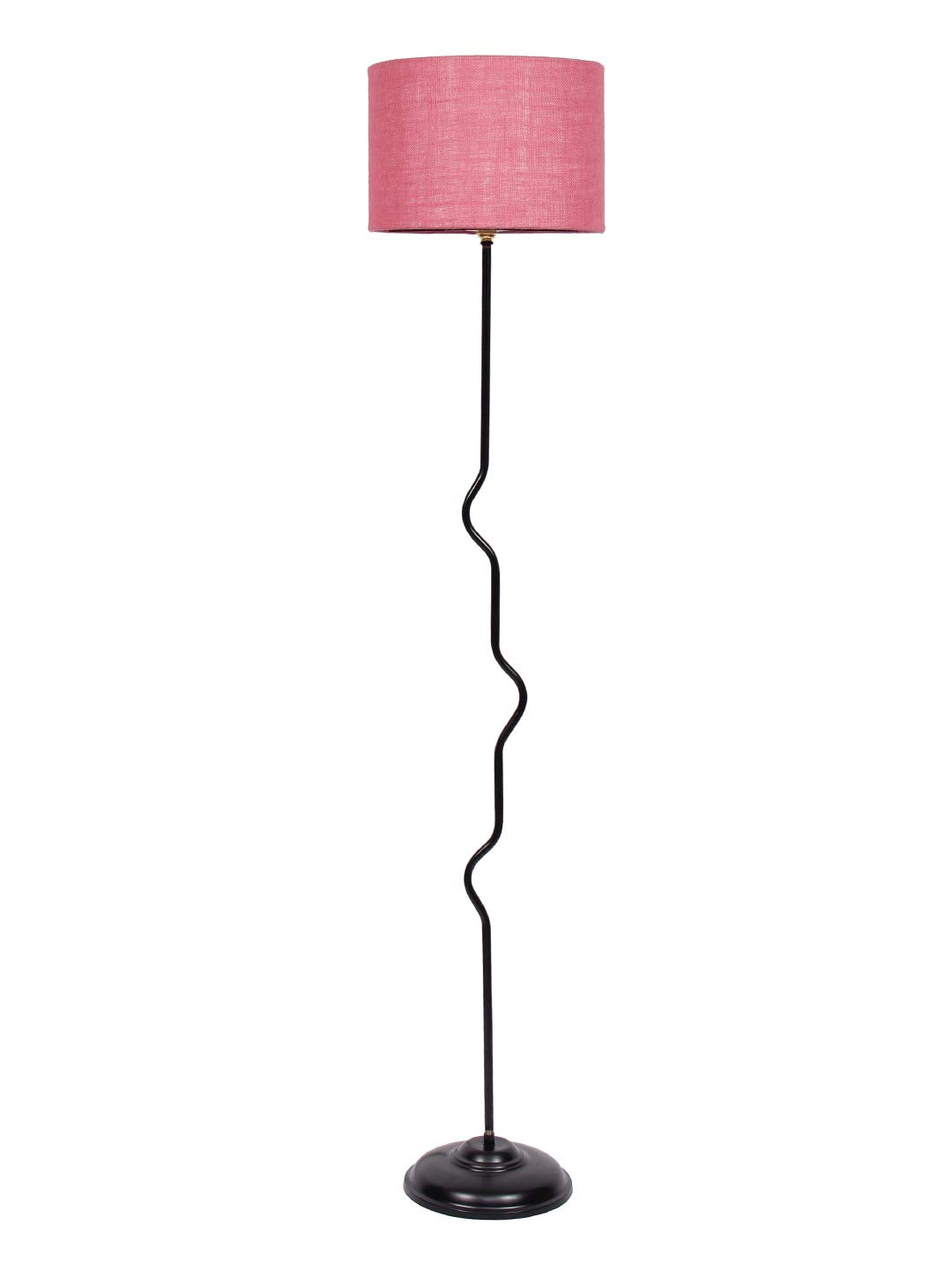 Drum Curvy Pink Jute Shade Floor Lamp with Black Base