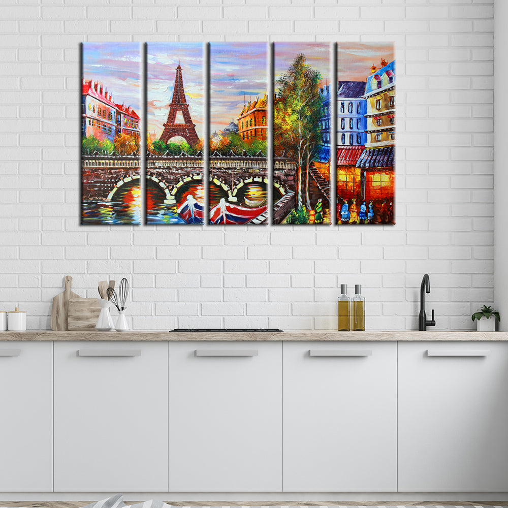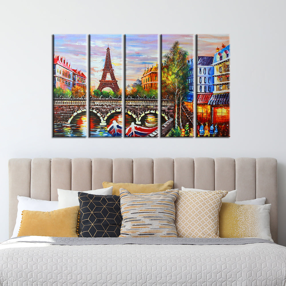 Eiffel Tower Sea View Canvas Wall Painting- With 5 Frames