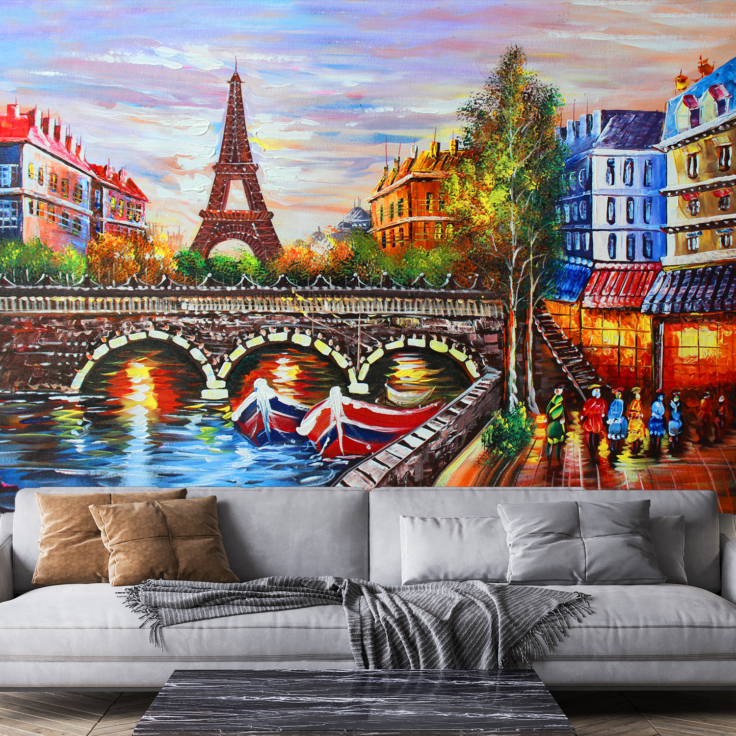 Eiffel Tower Sea View Digitally Printed Wallpaper