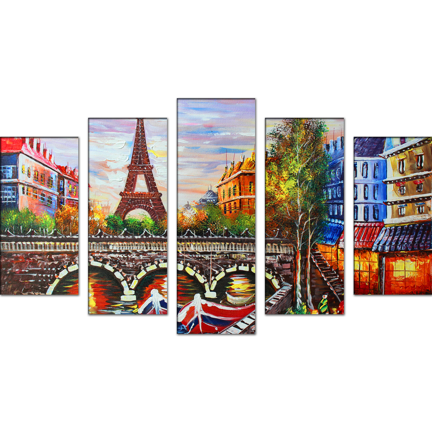 Eiffel Tower Sea View Canvas Wall Painting- With 5 Frames