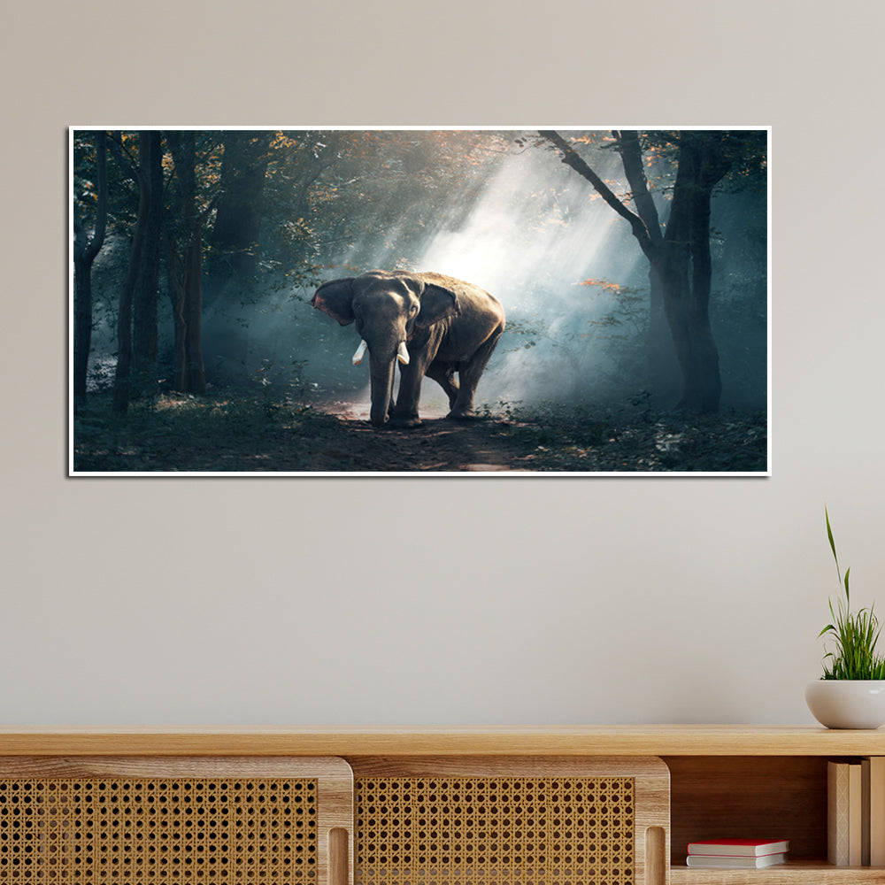 Elephant In Forest Canvas Floating Frame Wall Painting