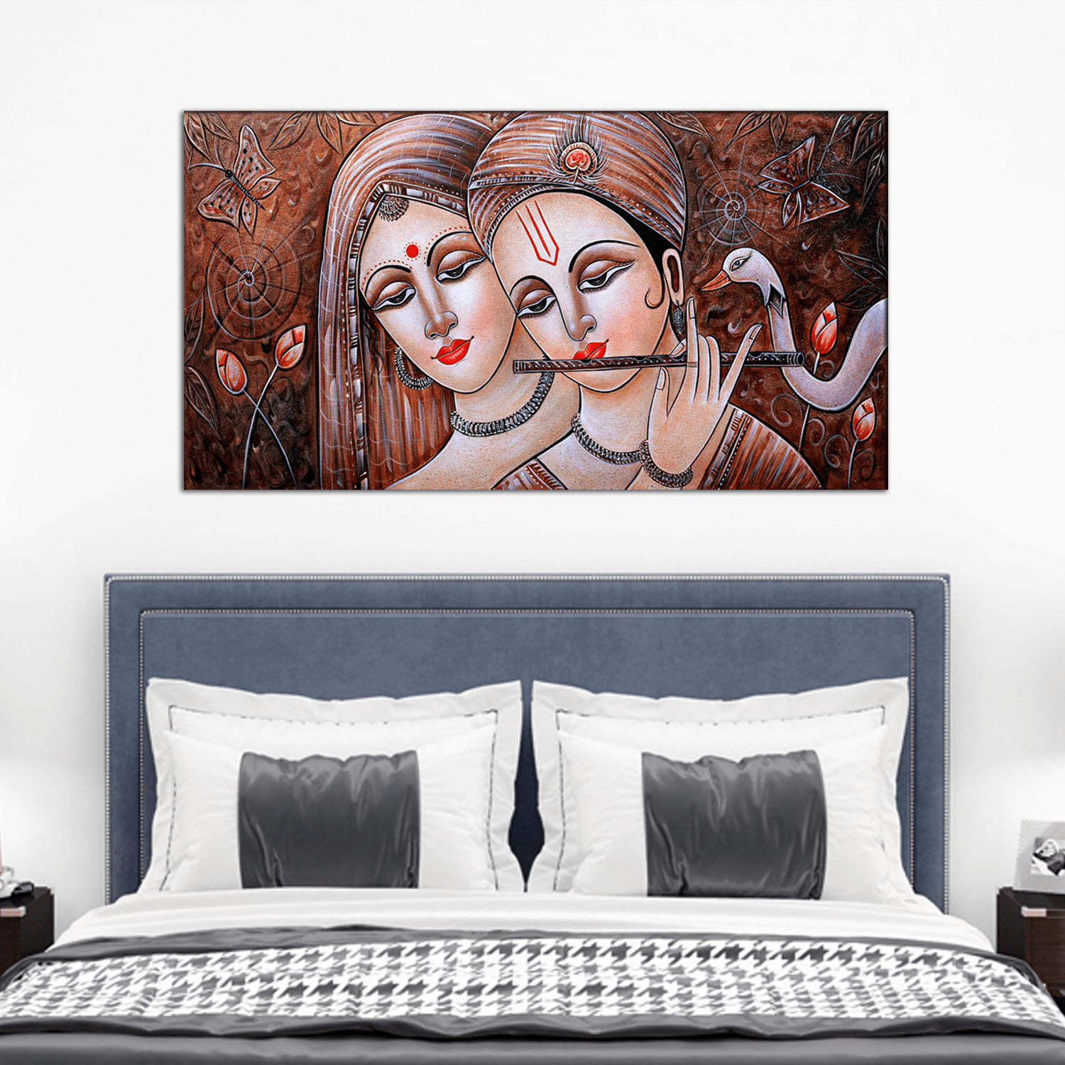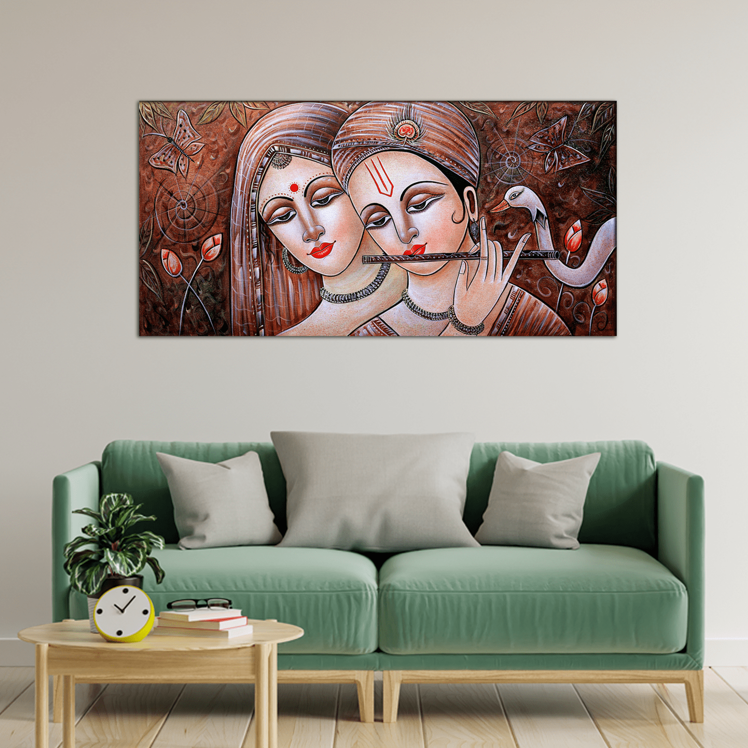 DecorGlance Rectangle painting Radha Krishna Playing Flute Canvas Wall Painting
