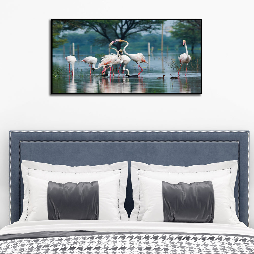 The Enchanting Painting Collection at DecorGlance is all set to rejuvenate the look of your living room and bedroom. This flamingo bird's colorful canvas wall art is a unique piece of art as it upholds the truest elements of nature in its purest form. Made with high-quality digital prints using HP inkjet quality, these landscape wall paintings look attractive and new for a longer period of time. This digital canvas wall art is environmentally friendly as they are made using 100% water-based and solvent-free printing. Give your home a complete divine look with these paintings by DecorGlance.