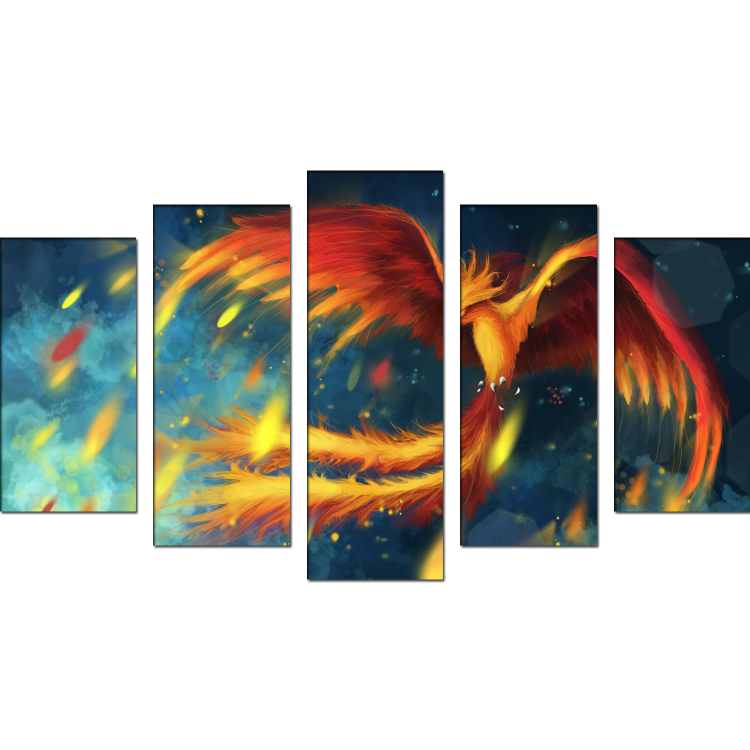 Fire Bird Canvas Wall Painting- With 5 Frames