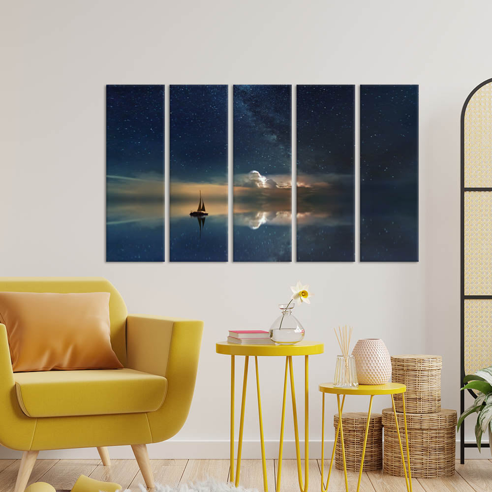 Galaxy Reflection In River Canvas Wall Painting - With 5 Panel