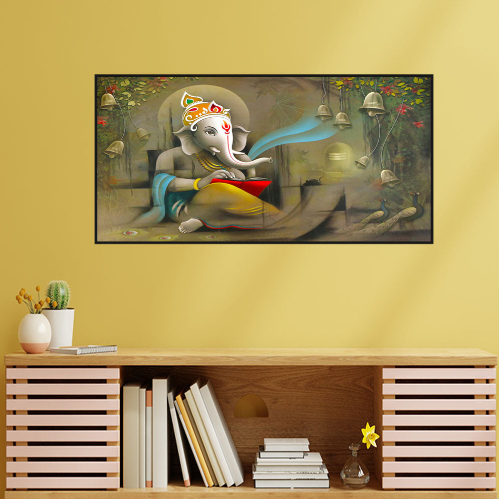 Lord Ganesha Beautiful View Canvas Floating Frame Wall Painting