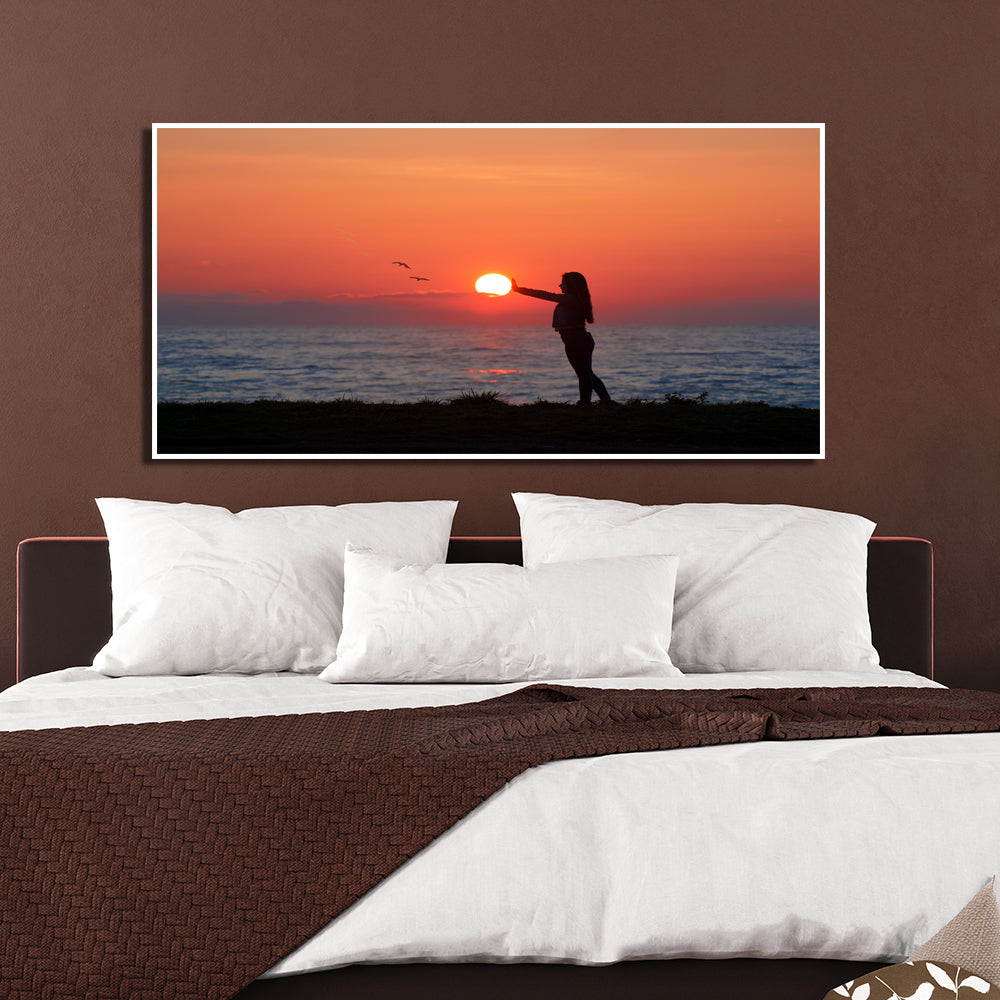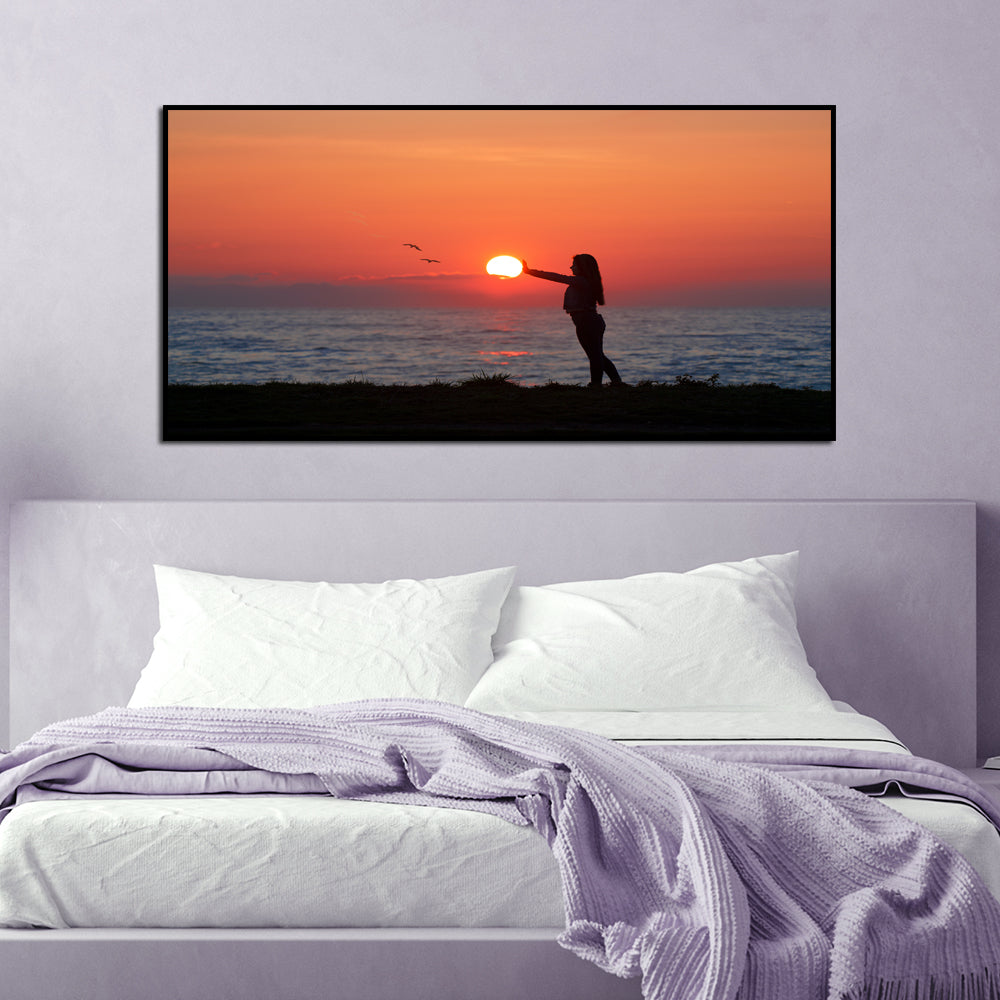 Girl Touching The Sun Canvas Floating Frame Wall Painting