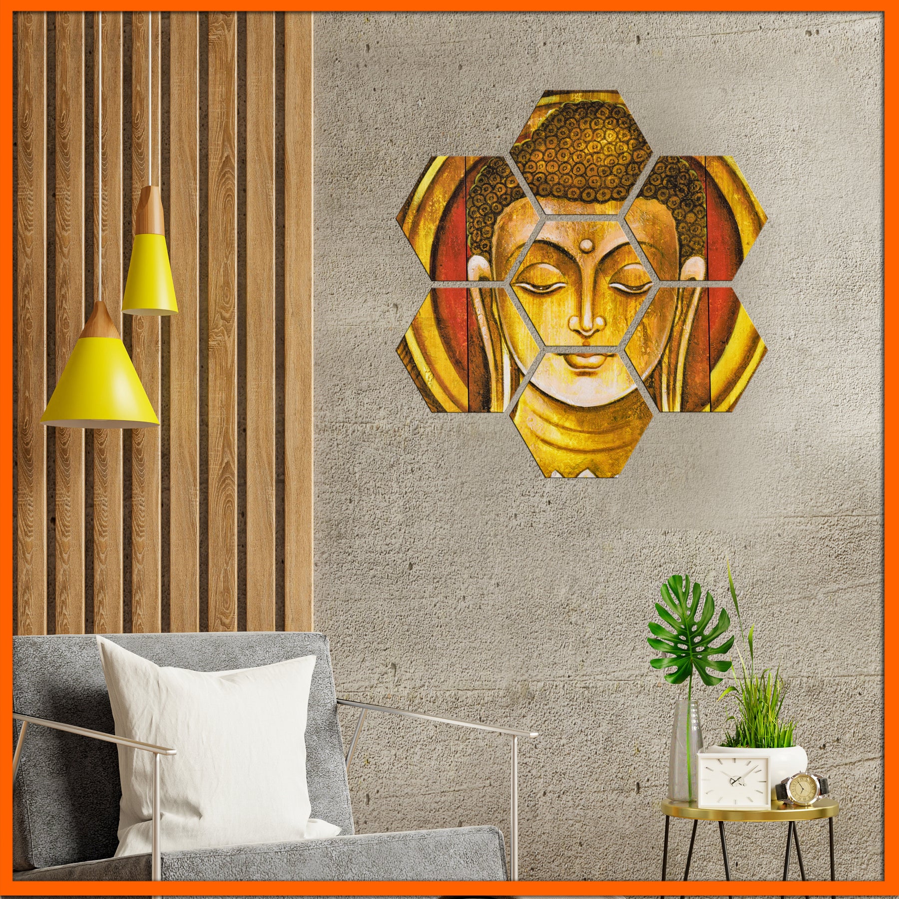 Golden Buddha Hexagonal Canvas Wall Painting