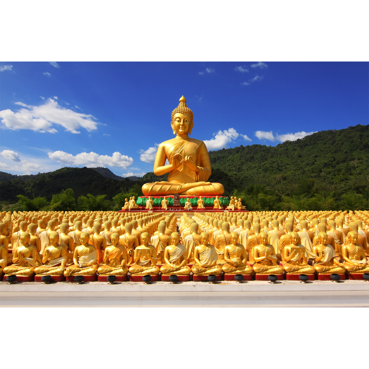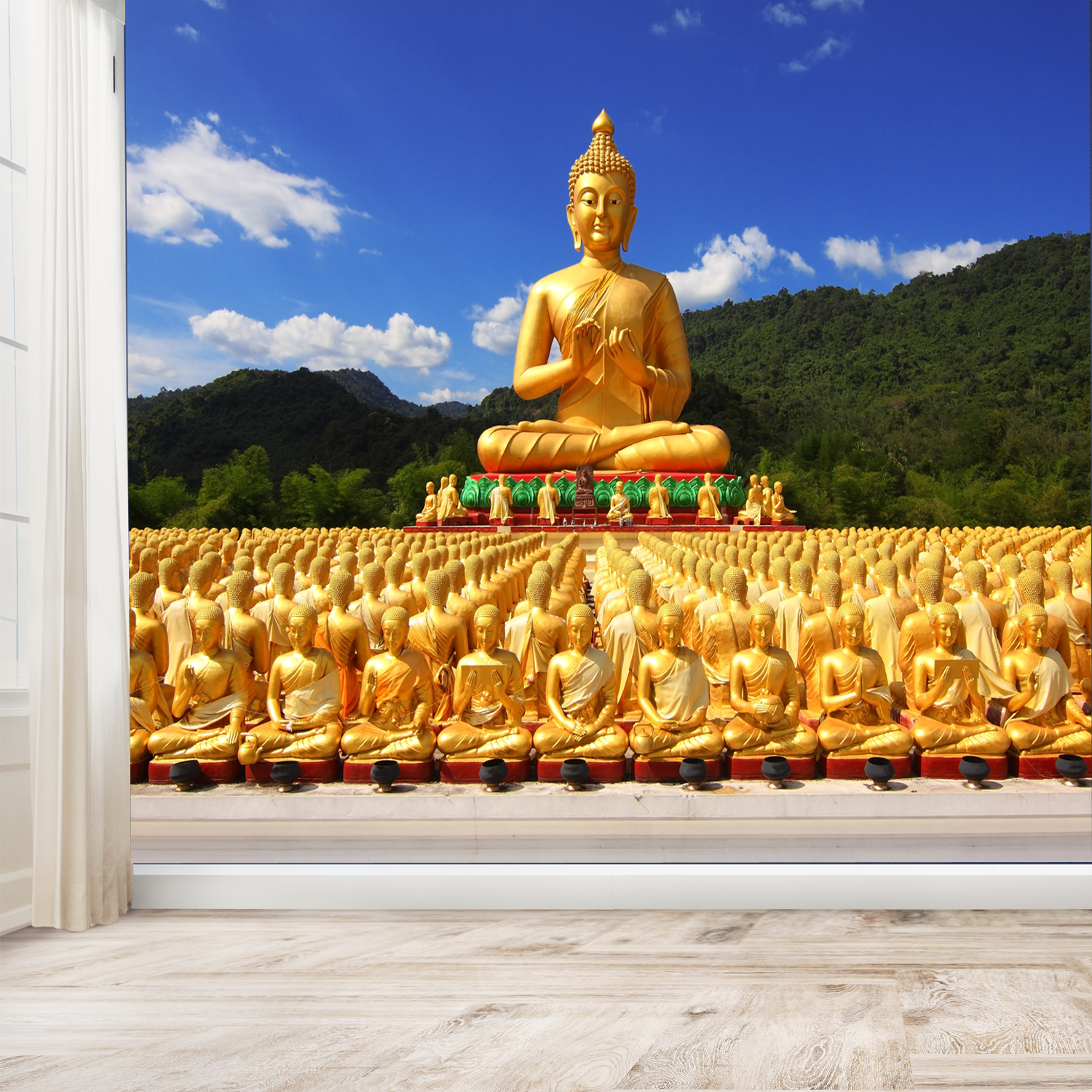 Golden Buddha With Nature Digitally Printed Wallpaper