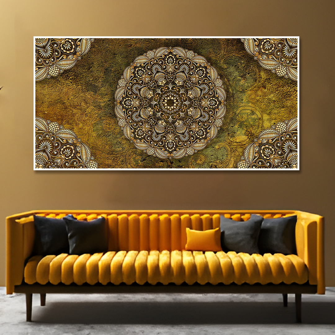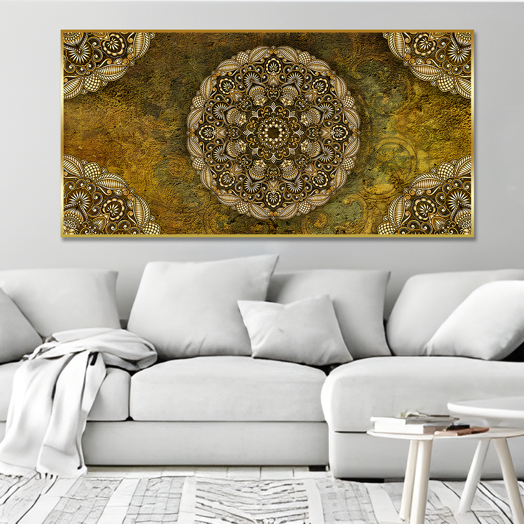 Golden Mandala Art Canvas Floating Frame Wall Painting Blooming Flower Landscape Original Painting is a symbol of peace & prosperity. Fall in love with this beautiful and designer Golden wall painting as a part of your home decor. Available in three canvas colors, it is a perfect living room painting that can completely change the look of your home. It is mounted on a strong and robust wooden frame which is made of American Pine thereby making it resistant to bending at corners due to the constant pressure of hanging on the wall. These canvas wall art are printed in HD quality and also use Eco-friendly inks that leave no residue or fumes in the environment around where it is put.