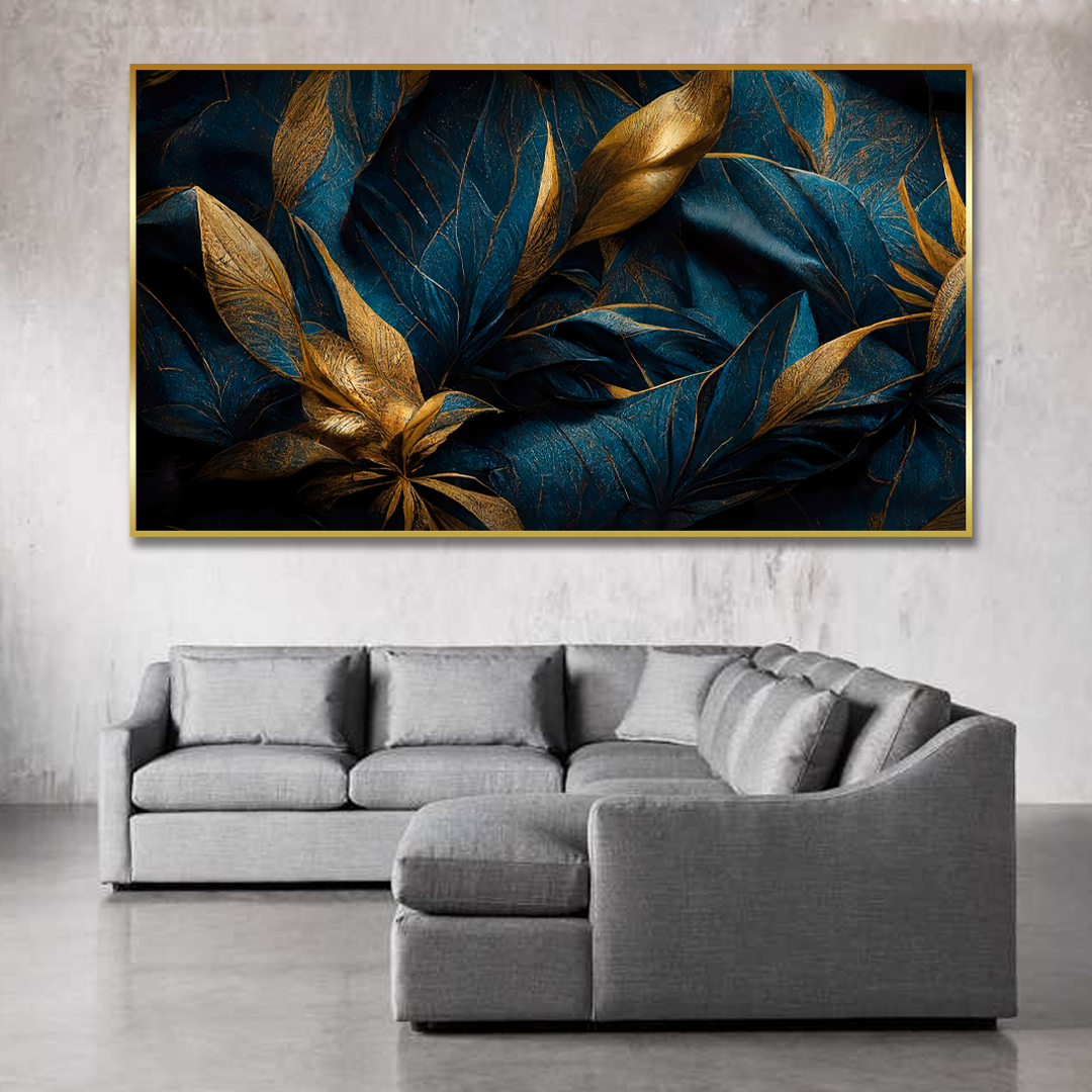 Golden Tropical leaves Floating Frame Canvas Wall Painting Blooming Flower Landscape Original Painting is a symbol of peace & prosperity. Fall in love with this beautiful and designer Golden wall painting as a part of your home decor. Available in three canvas colors, it is a perfect living room painting that can completely change the look of your home. It is mounted on a strong and robust wooden frame which is made of American Pine thereby making it resistant to bending at corners due to the constant pressure of hanging on the wall. These canvas wall art are printed in HD quality and also use Eco-friendly inks that leave no residue or fumes in the environment around where it is put.