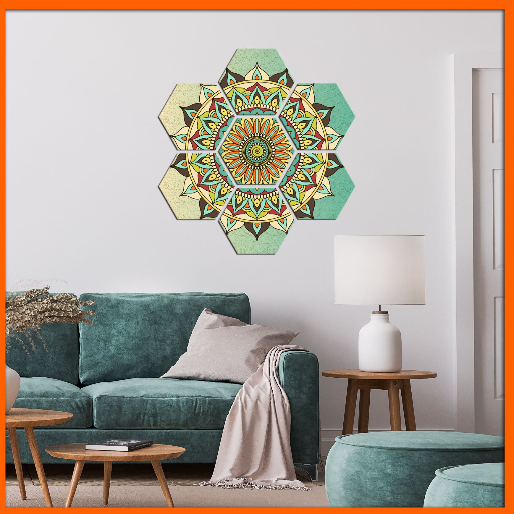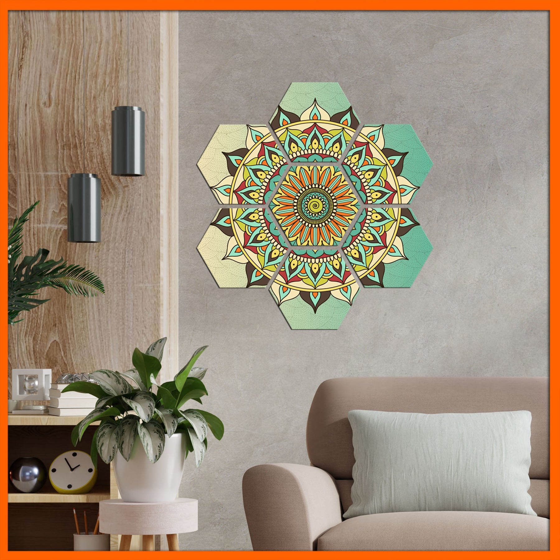 Gradient Mandala Hexagonal Canvas Wall Painting - 7pcs