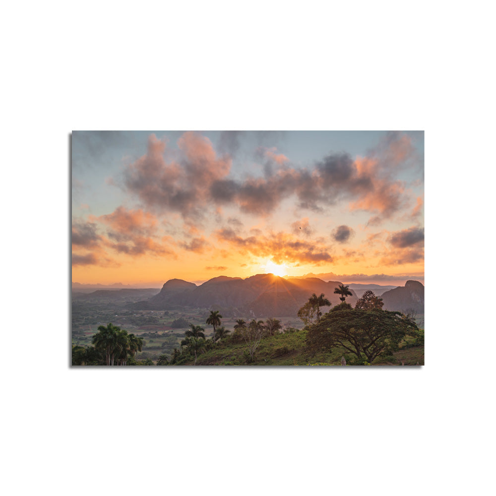 Green Grass Field & Sunset View Print On Canvas Wall Painting