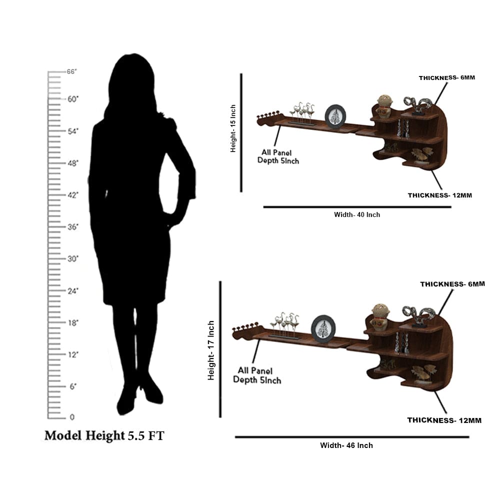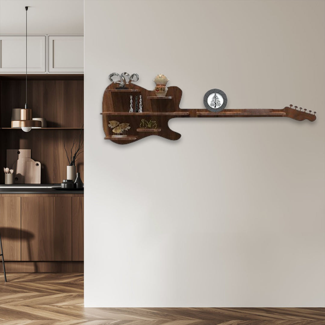 This exquisite Guitar Shape Wall Shelf brings a unique decor for your bare walls with a great utility. It is matte finished with walnut color, made of imported Engineered wood. Ideal for living room, Bedroom, Study room, Kid's room. Can be used as Book shelf, wall shelf, Toy shelf, showcase etc. The package includes all accessories like nails, wall plugs, instructions needed to hang on wall