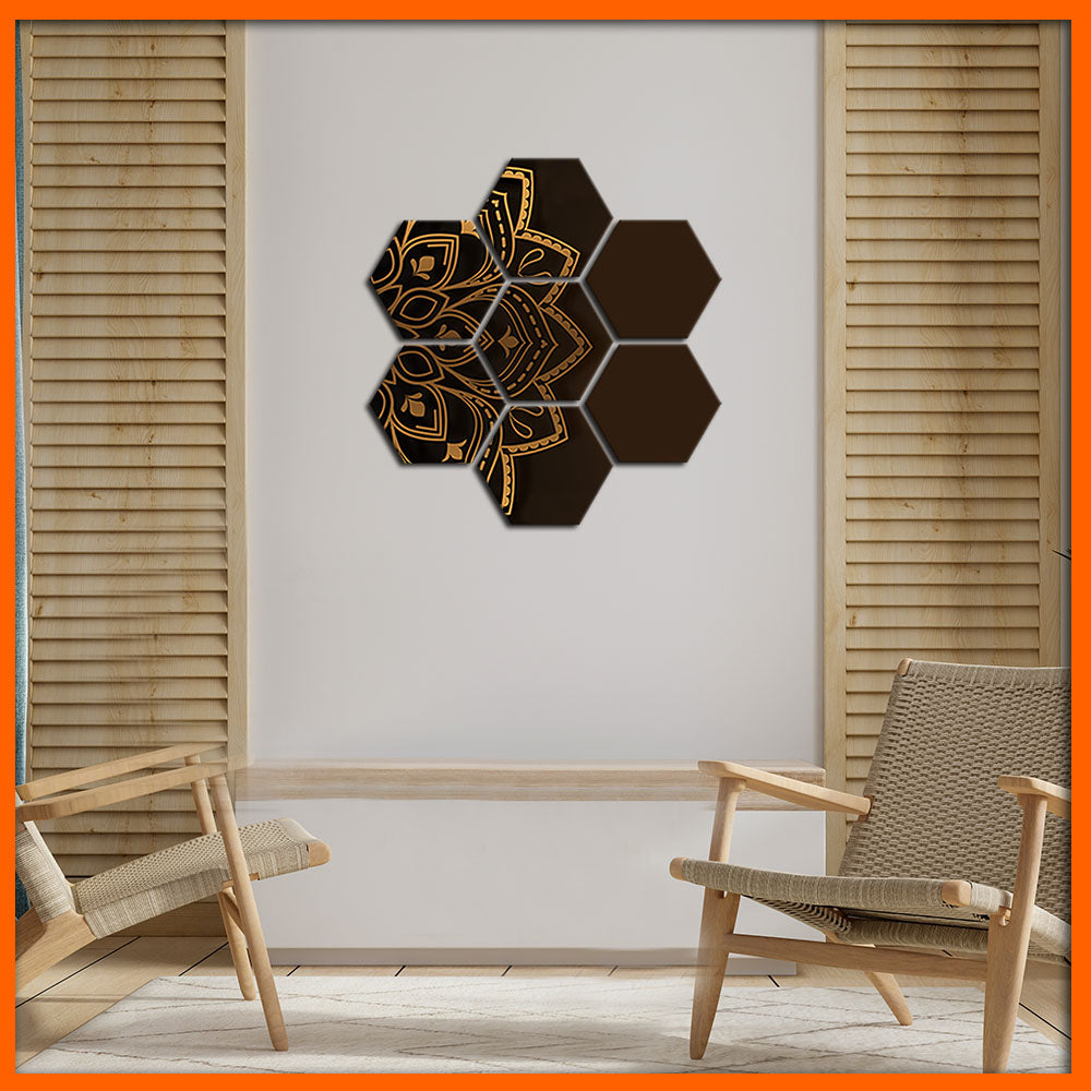 Half Mandala Hexagonal Canvas Wall Painting - 7pcs