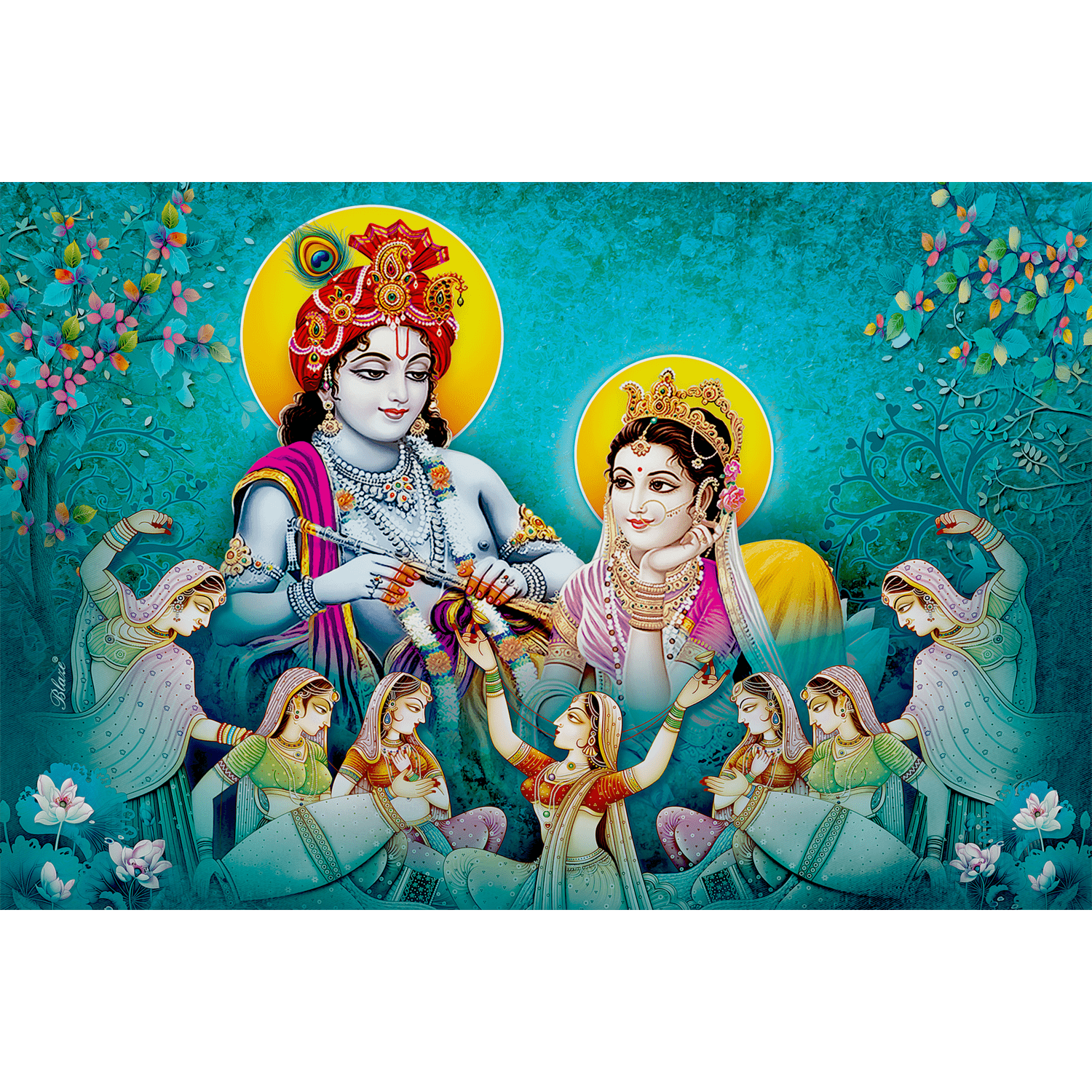 Radha Krishna Enjoying Gopis Dance Digitally Printed Wallpaper