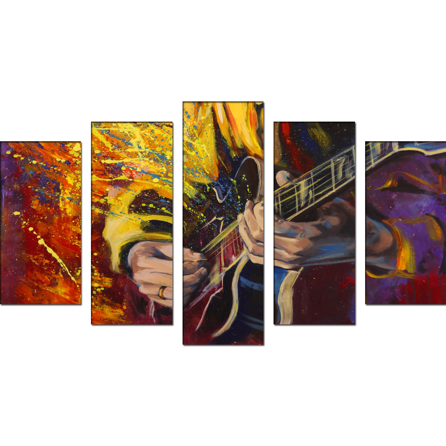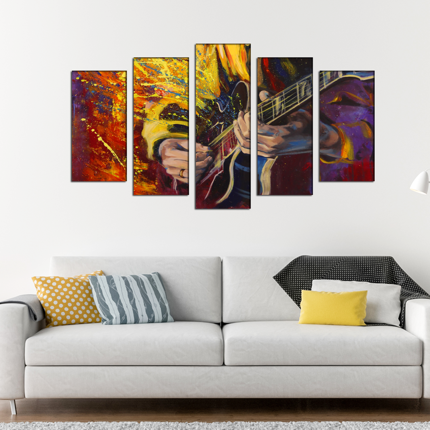 Man Playing Guitar Abstract Canvas Wall Painting- With 5 Frames
