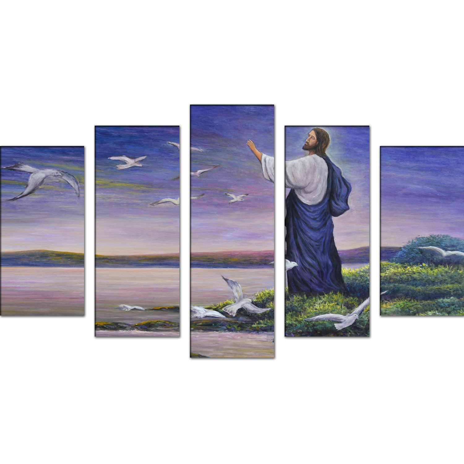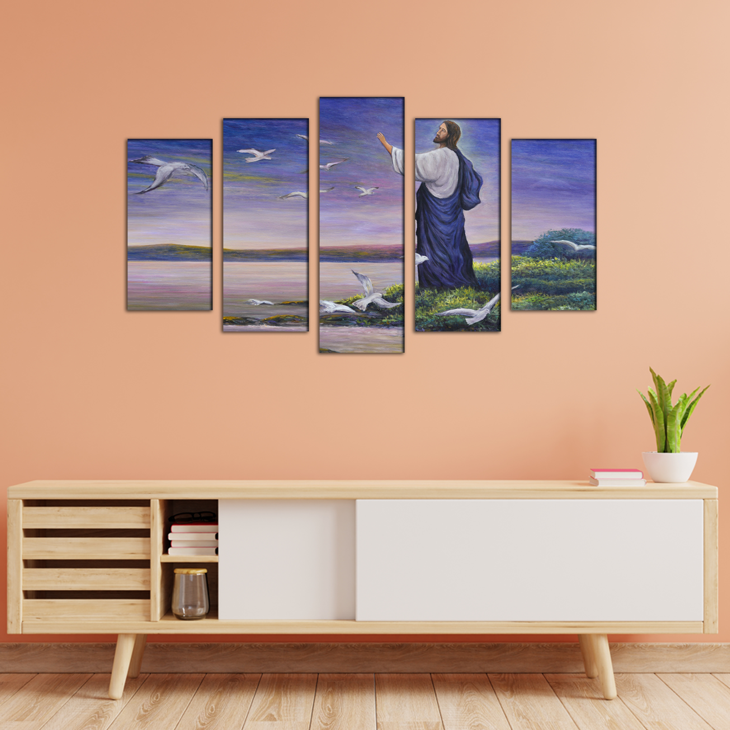 Jesus with Birds Canvas Wall Painting- With 5 Frames