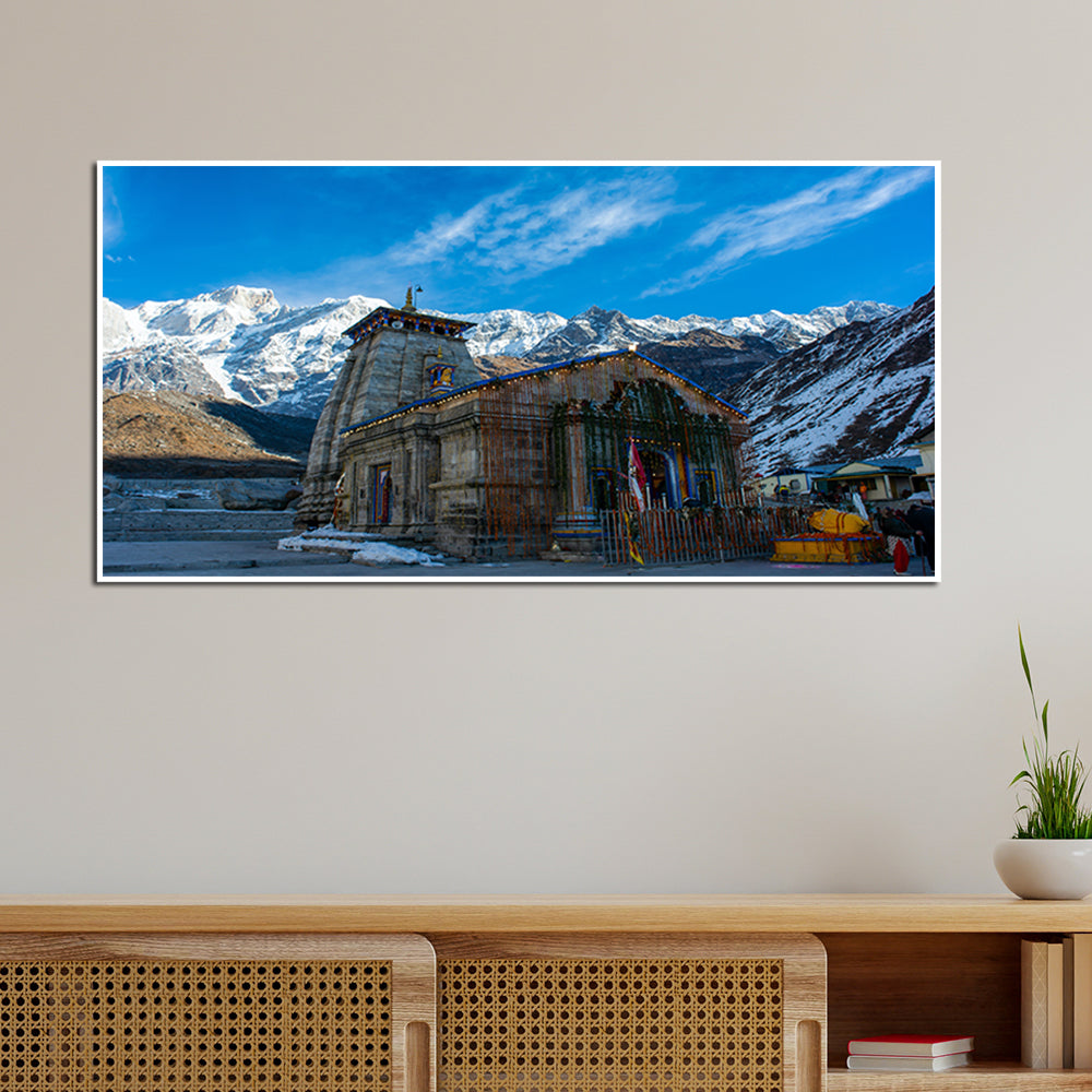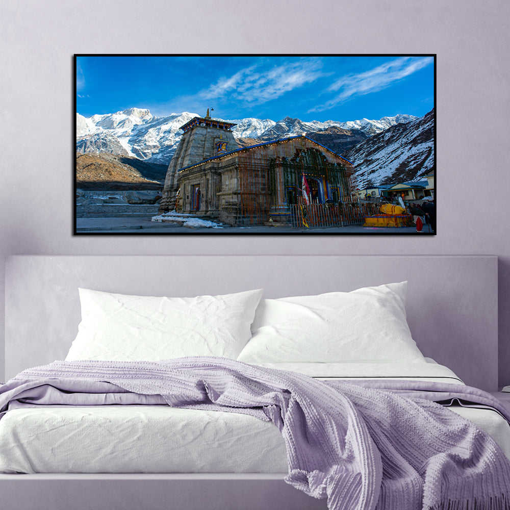 Kedarnath Temple Canvas Floating Frame Wall Painting