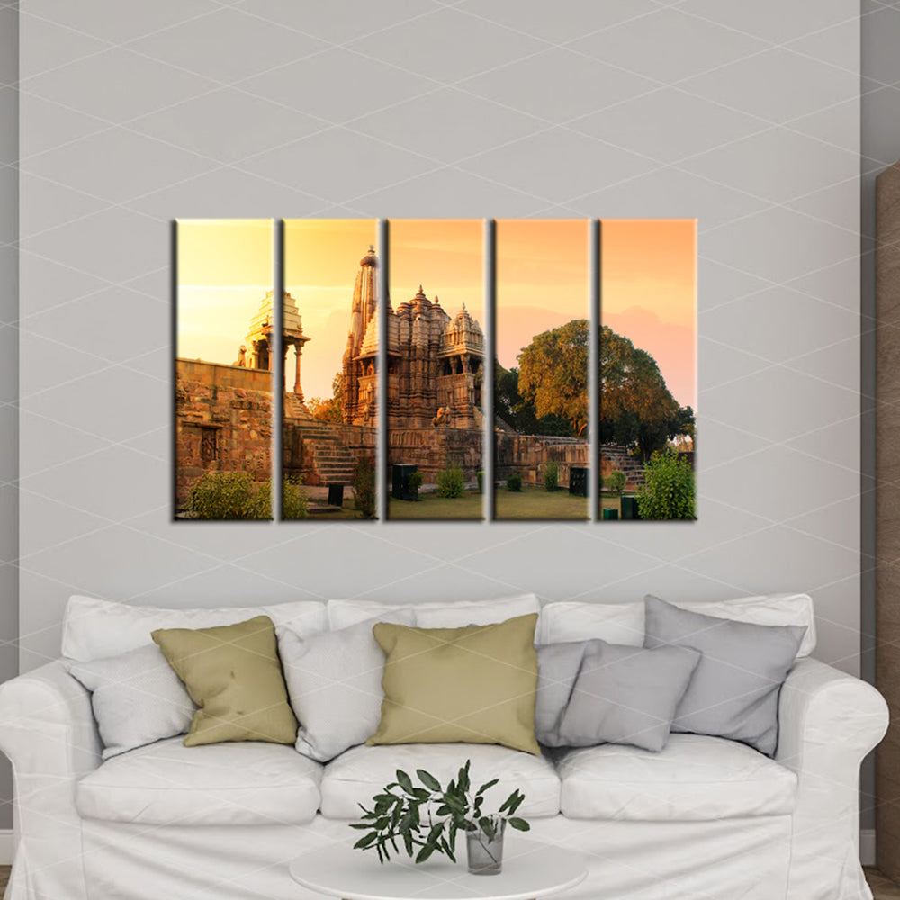 Khajuraho Temple Canvas Wall Painting- With 5 Frames