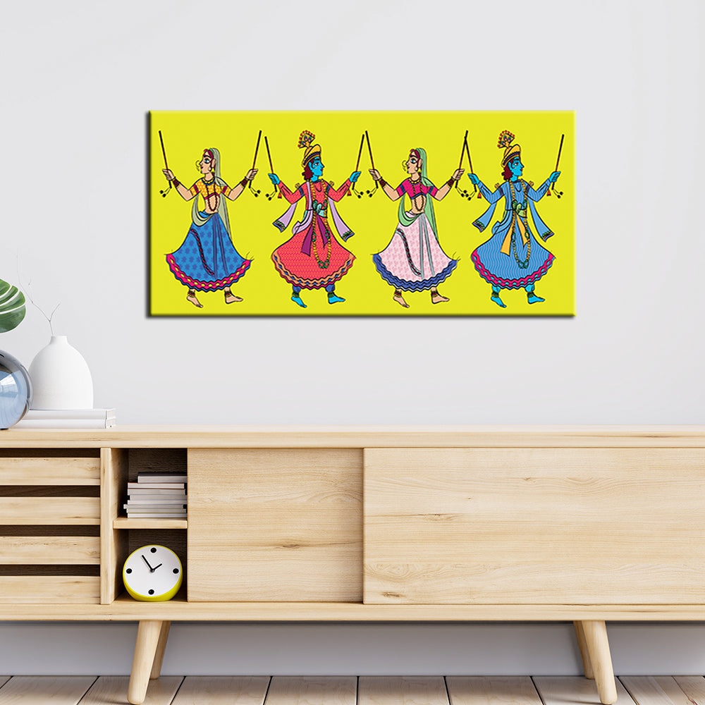 Dandiya Dancer In Madhubani Pattern Canvas Wall Painting