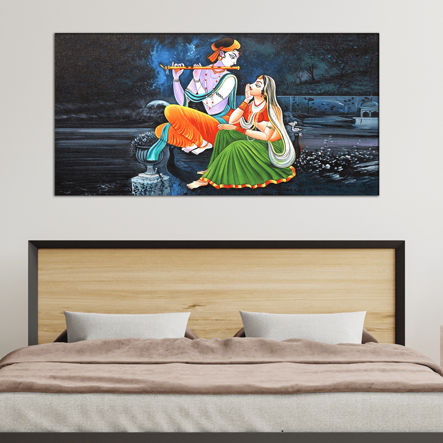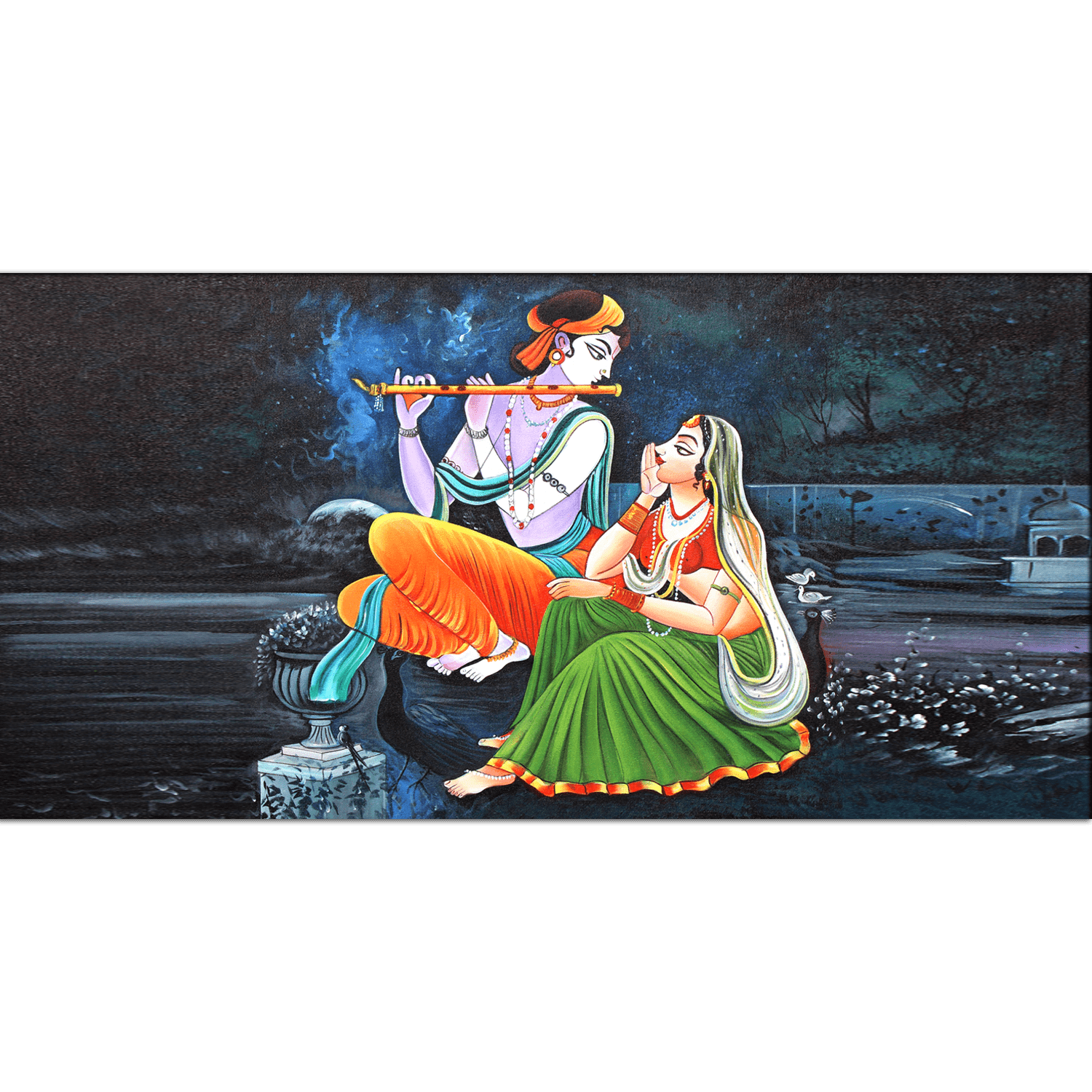 DecorGlance Rectangle painting Radha Krishna Playing Flute Canvas Wall Painting