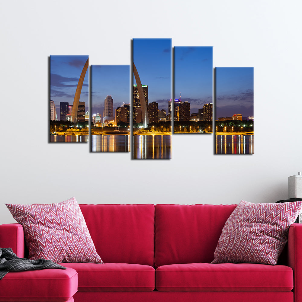 City Lake View Canvas Wall Painting- With 5 Frames